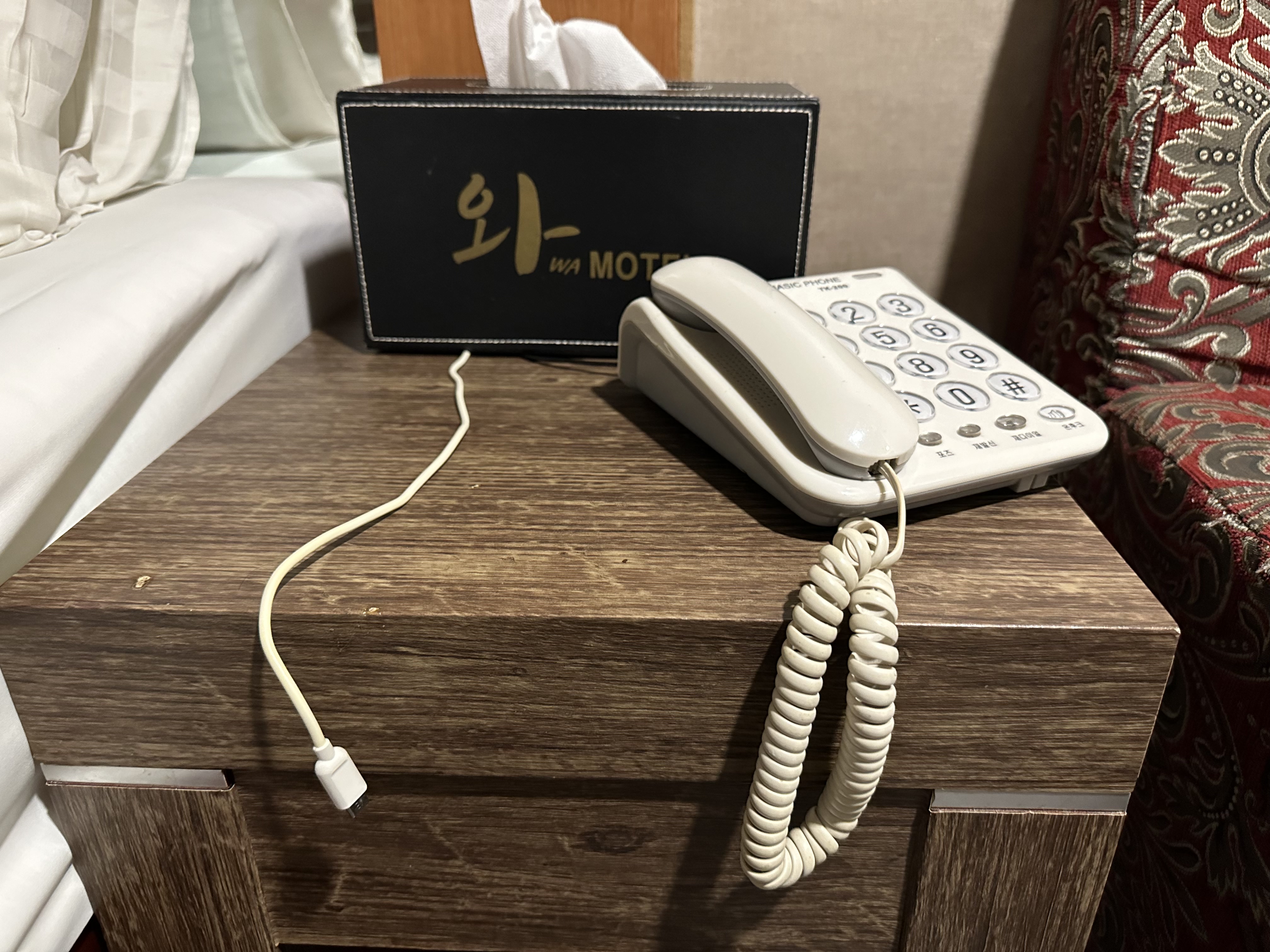 충전선은 요즘 국내 호텔 에서는 대부분 아이폰 안드로이드 전용 3선 다 놓는데~ 여기는 c 타입 하나만 시크하게 놓여 있습니다~ 마이웨이 호텔 입니다 여기 법이 이러니 따르라 느낌 입니다 ㅎㅎ 아무튼 하루 묵기에 뭐 문제 없고, 5만원도 아니고 3만원 짜리 방 치고는 이것도 전 훌륭 하다고 생각 합니다~