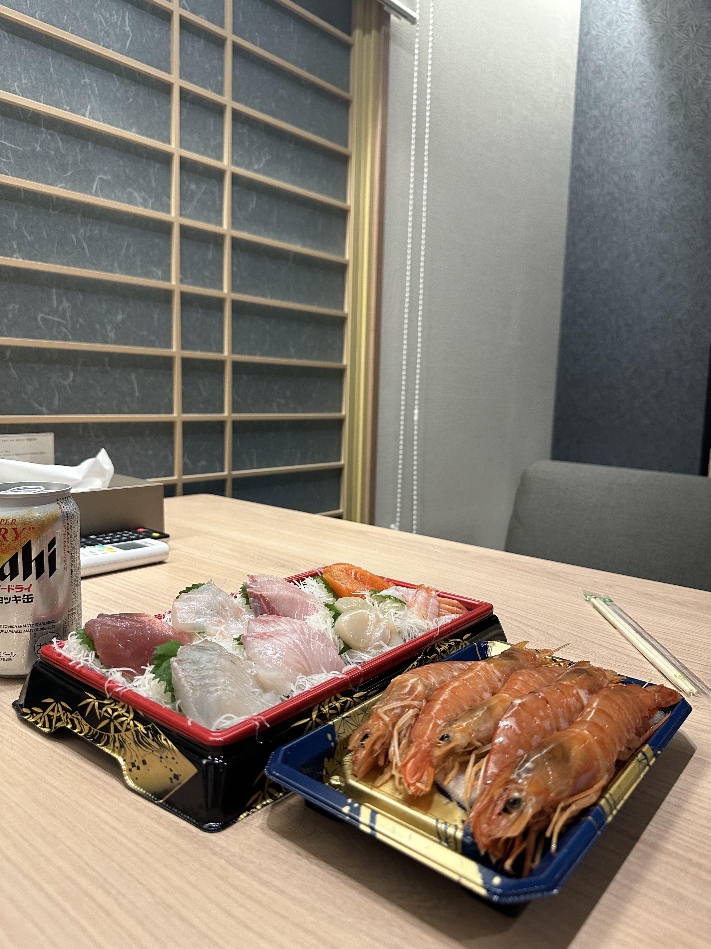 아무튼 멋진 야경을 보면서 맥주에 구운 새우와 함께 회를 섭취 합니다~ 그렇게 저는 일본 여행 에서 즐거운 시간을 보내는 중 입니다~