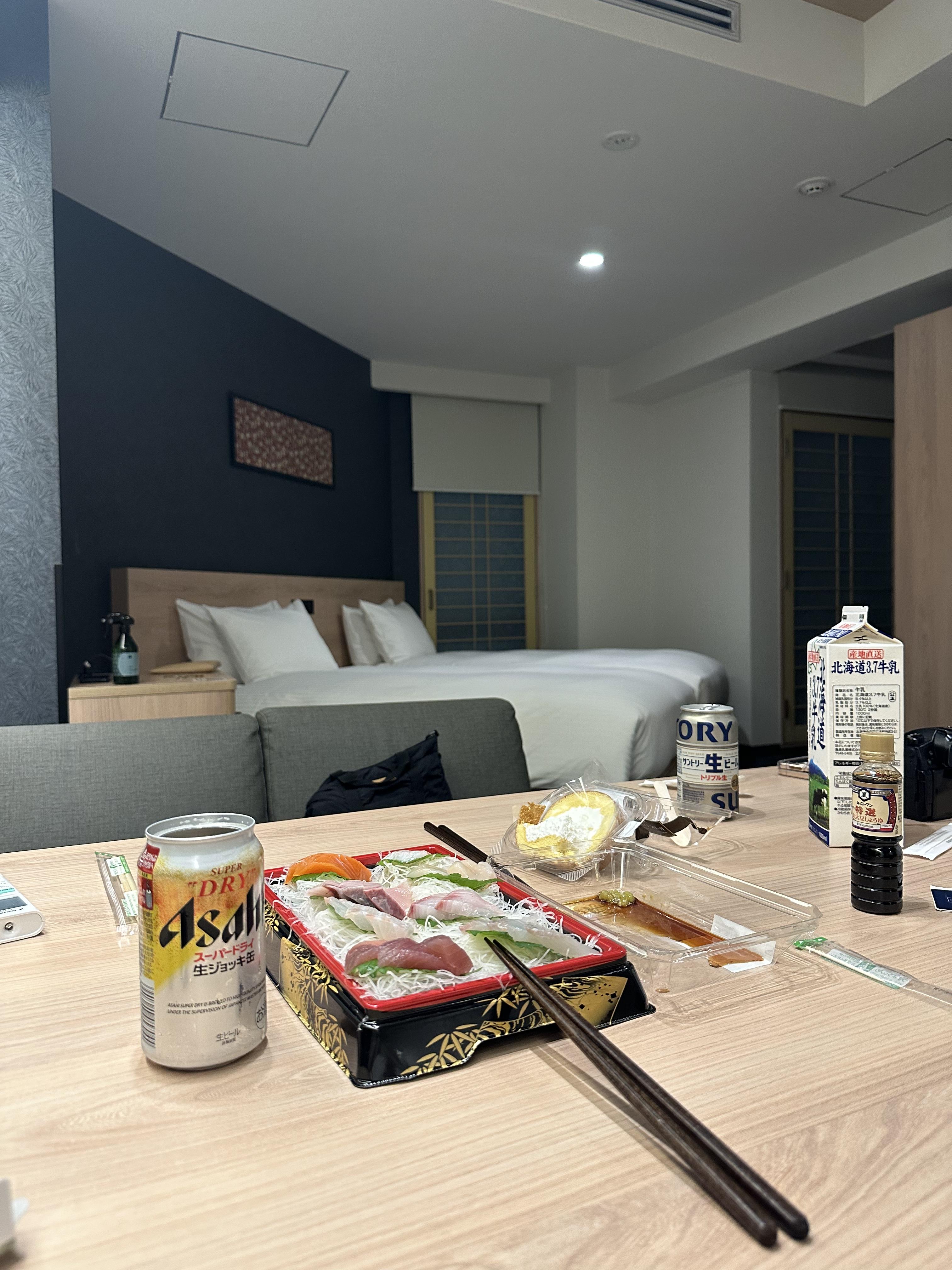 회랑 맥주랑 ~ 간단한 크림빵이랑 우유랑 이것저것 먹다보니 일본 여행 에서의 힐링 타임이 잘 흘러 갑니다~ 일본 에서는 어떻게 이리도 회가 저렴한지 참 이해가 안되는데~ 그리고 소고기도 정말 저렴한데~ 한국과 비교를 해 보면 참 노이해 입니다~ 한국에서는 소고기 가격이 정말 미쳤다고 밖에 말을 못하는데~ ㅠ