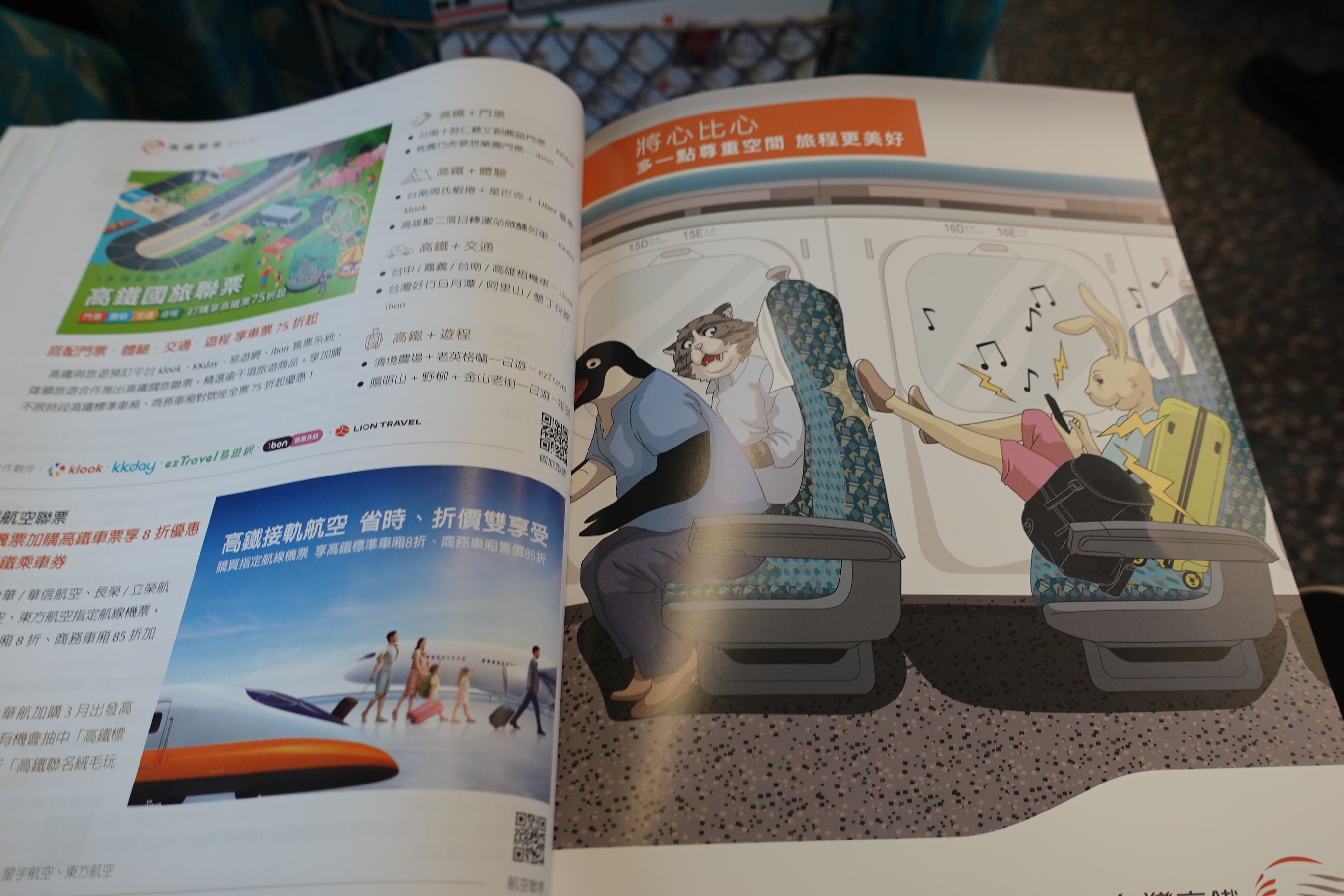 스마트폰도 보고, 잡지도 보고, 식사도 하고 하다보면 시간이 금방 지나가 버립니다~ 그리고 타이베이 여행 에서 가오슝 까지 거리상으로도 그리멀지 않아서 큰 무리 없다고 봅니다
