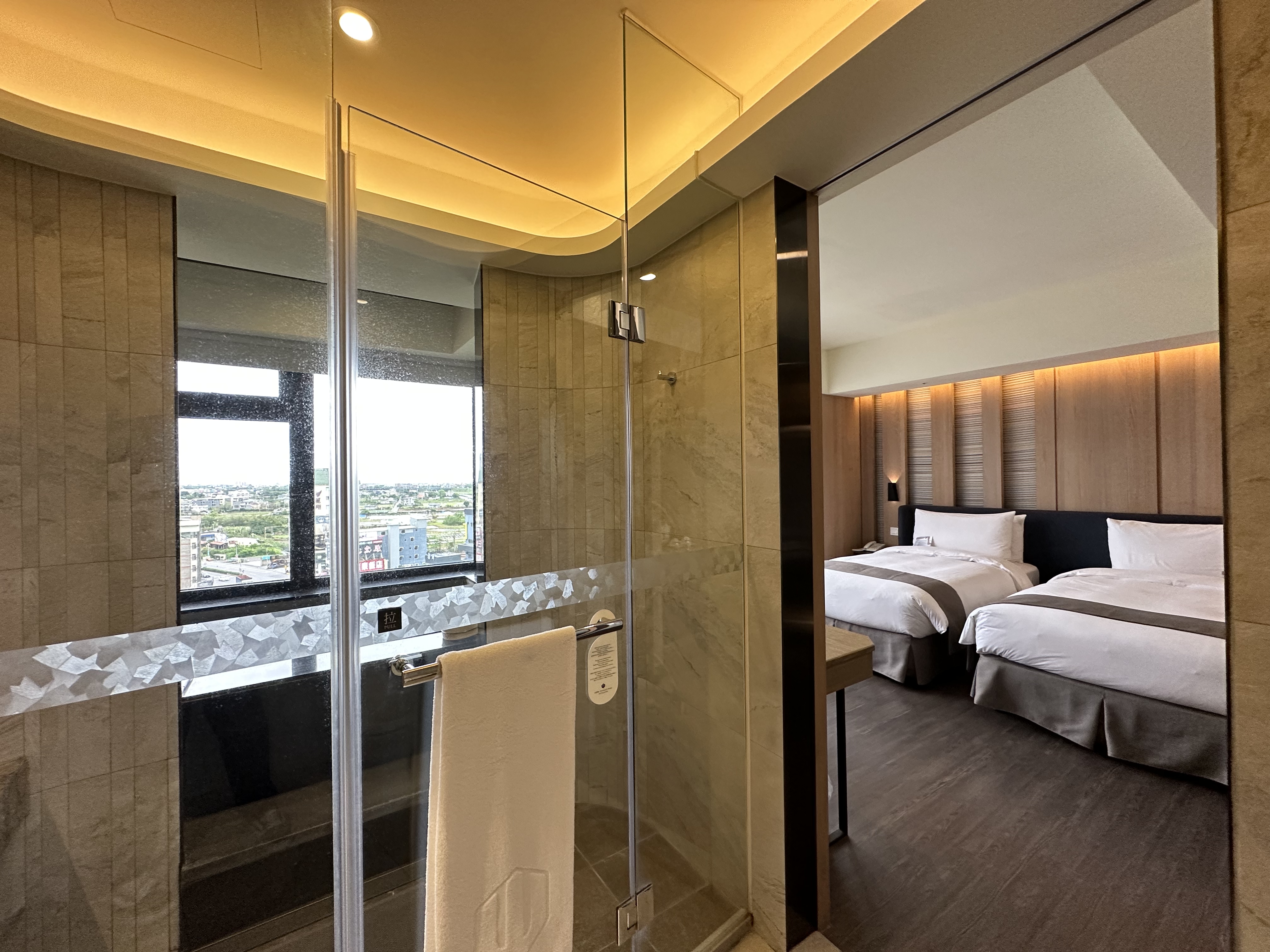 세면대에서 객실을 바라보면 딱 이런 뷰 입니다~ 침대는 큰거 그러니까 더블 두개가 놓여 있기에 가족 여행 으로 이곳을 와도 좋습니다~ 그리고 조명이 아주 은은하고 너무 좋습니다