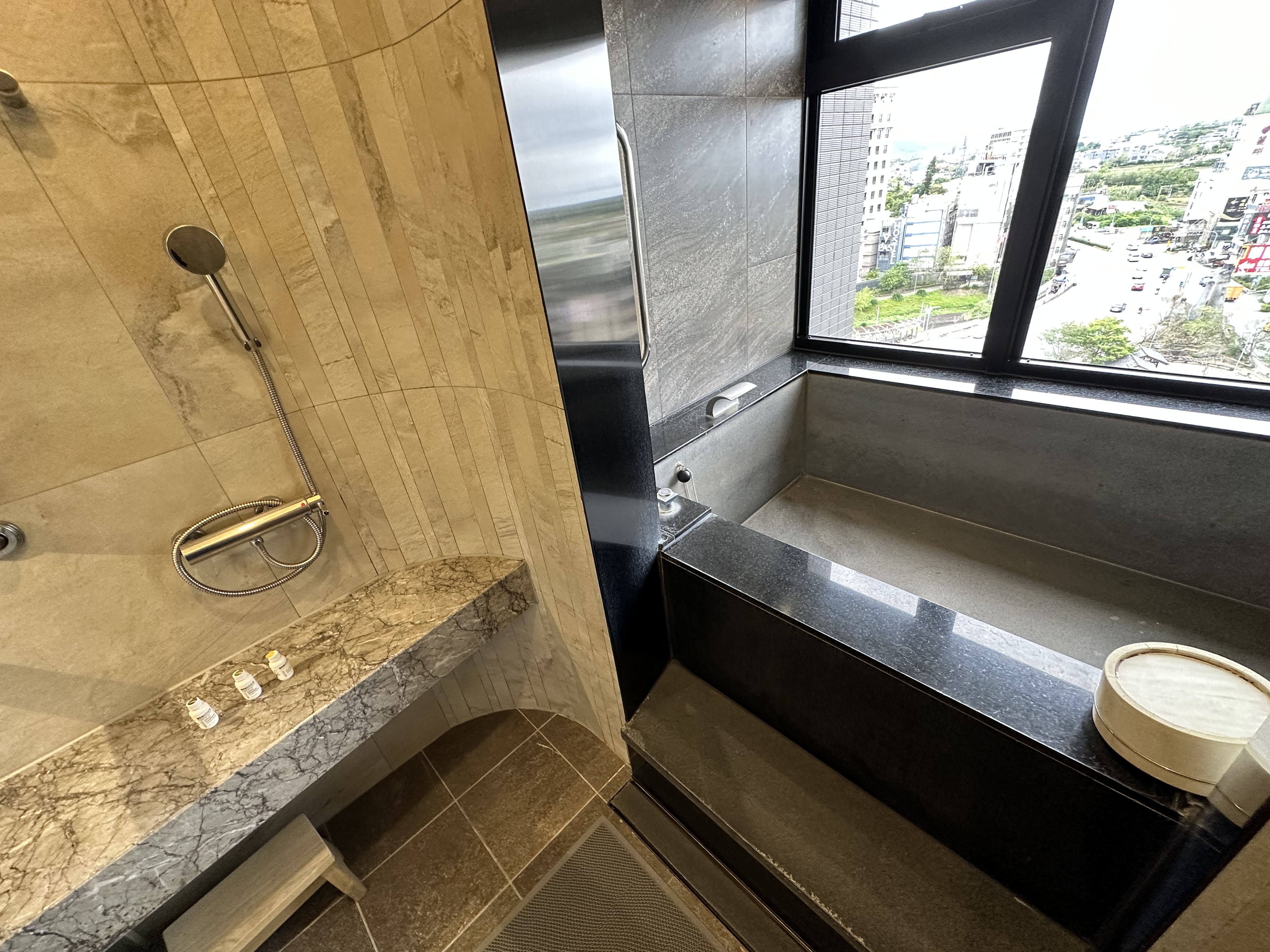 화장실과 온천시설 세면대는 사진과 같이 이렇게 분리가 되어 있습니다~ 채광이 너무 좋아서~ 온천 하면서는 밖을 보면서 햇살이 들기에 대만 온천 즐기기에 참 좋은 호텔 이라고 말씀 드릴 수 있습니다