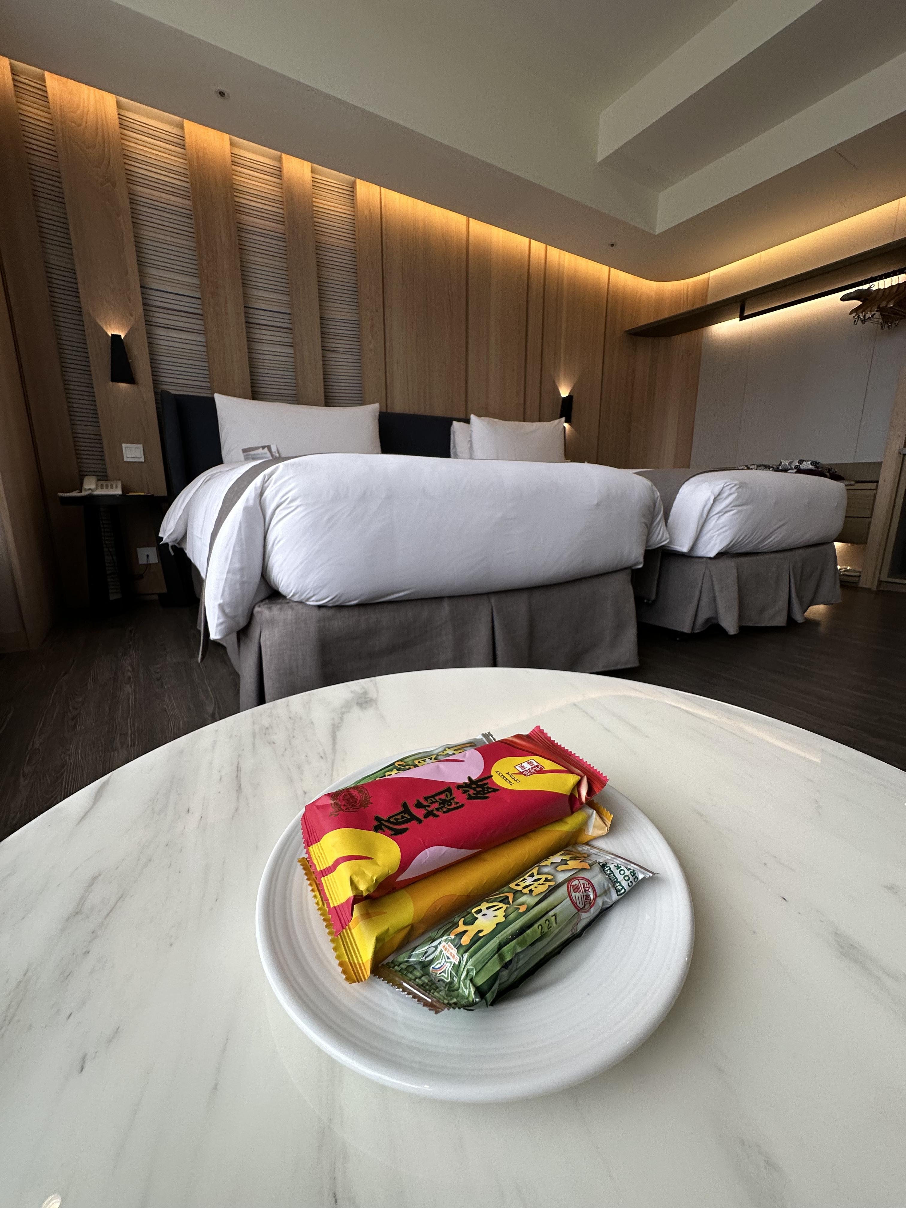 이곳에서는 그러니까 대만 이란 에서는 파가 굉장히 유명한데~ 야마가타가쿠 호텔 에서는 이렇게 파 맛 과자^^ 이곳의 특산품과도 같은 과자를 무료로 웰컴 스낵 으로 제공 해 줍니다