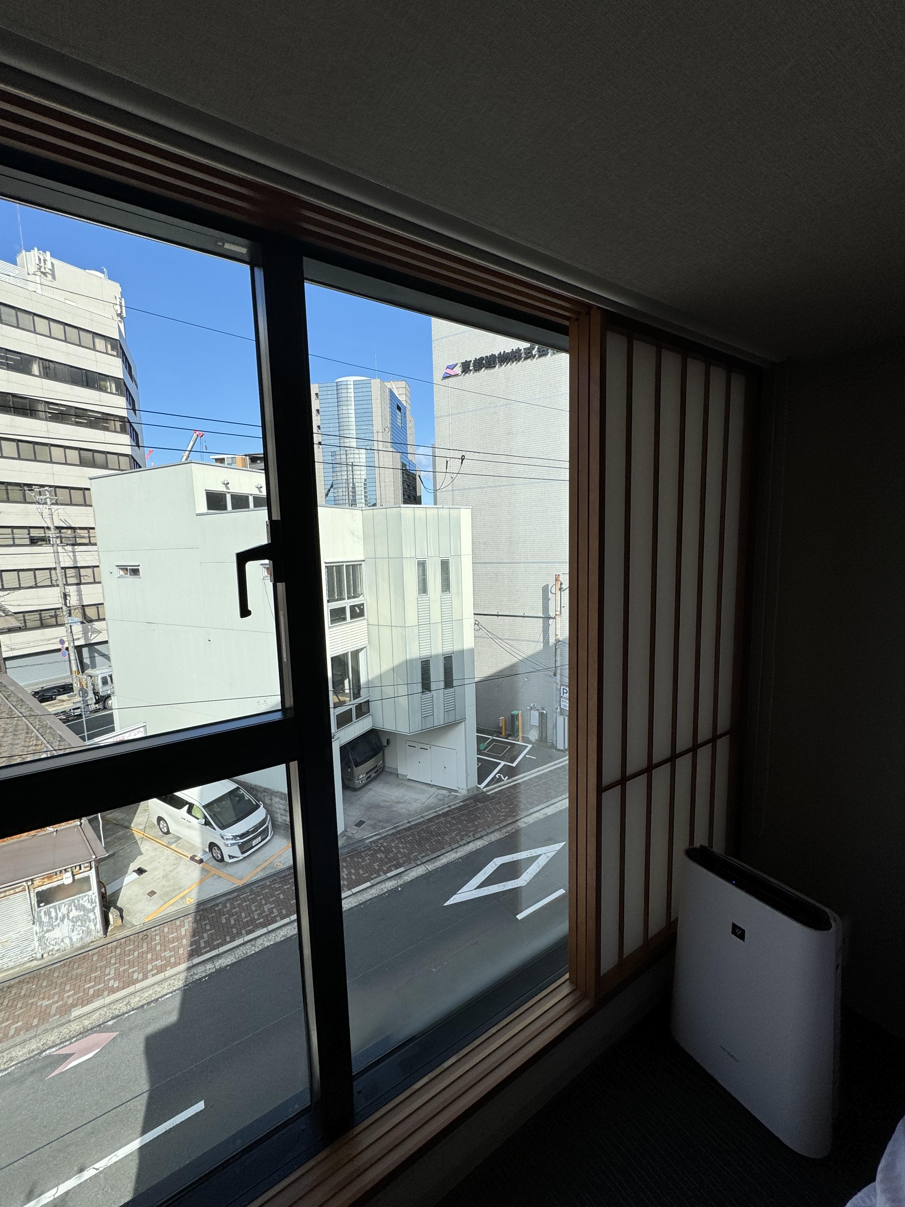 다음은 교토 여행 에서의 미마루 호텔 객실 뷰 입니다~ 저는 낮은 층에 배정받았는데~ 나름 뷰가 나쁘지 않습니다~ 도로가 옆이긴 한데~ 방음도 잘 되어 있고 낮에는 채광도 너무나도 좋습니다