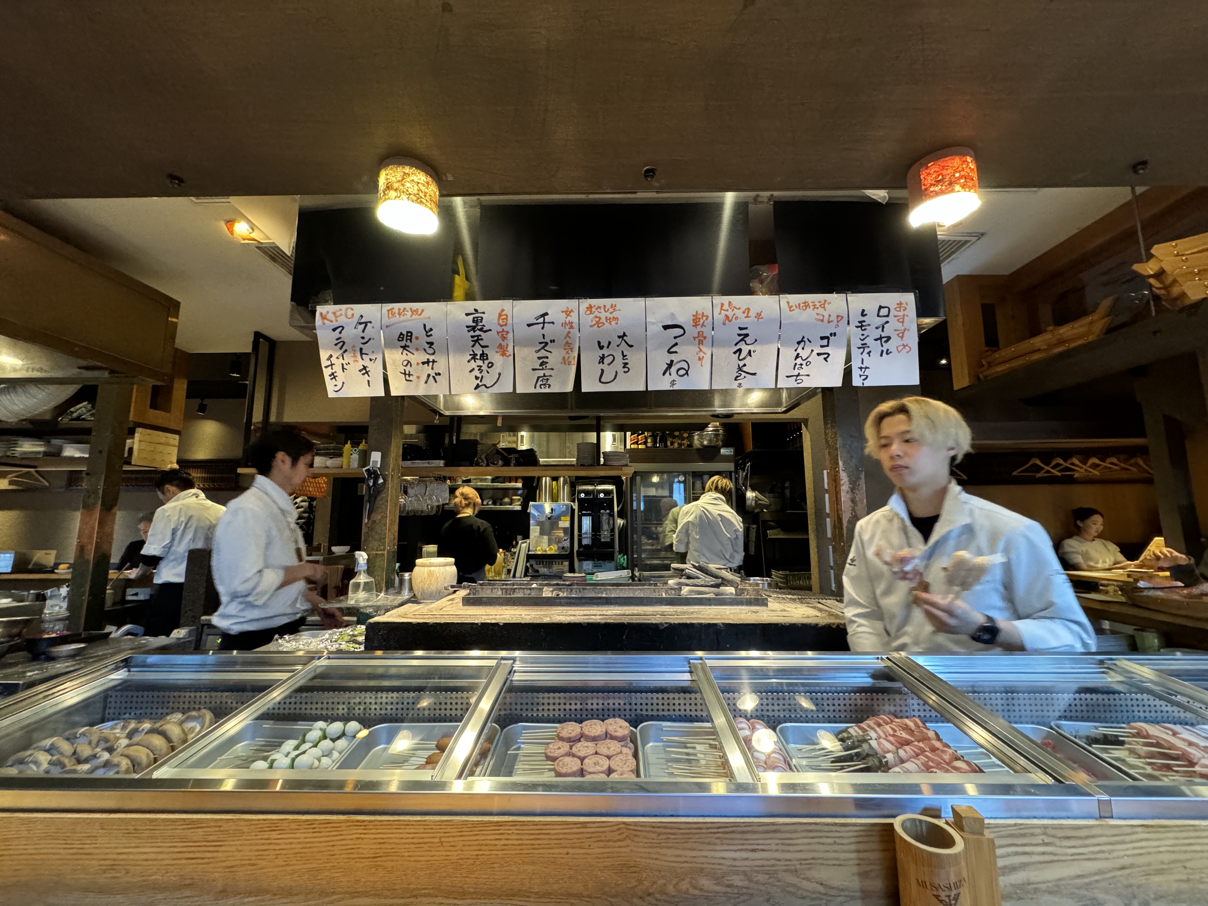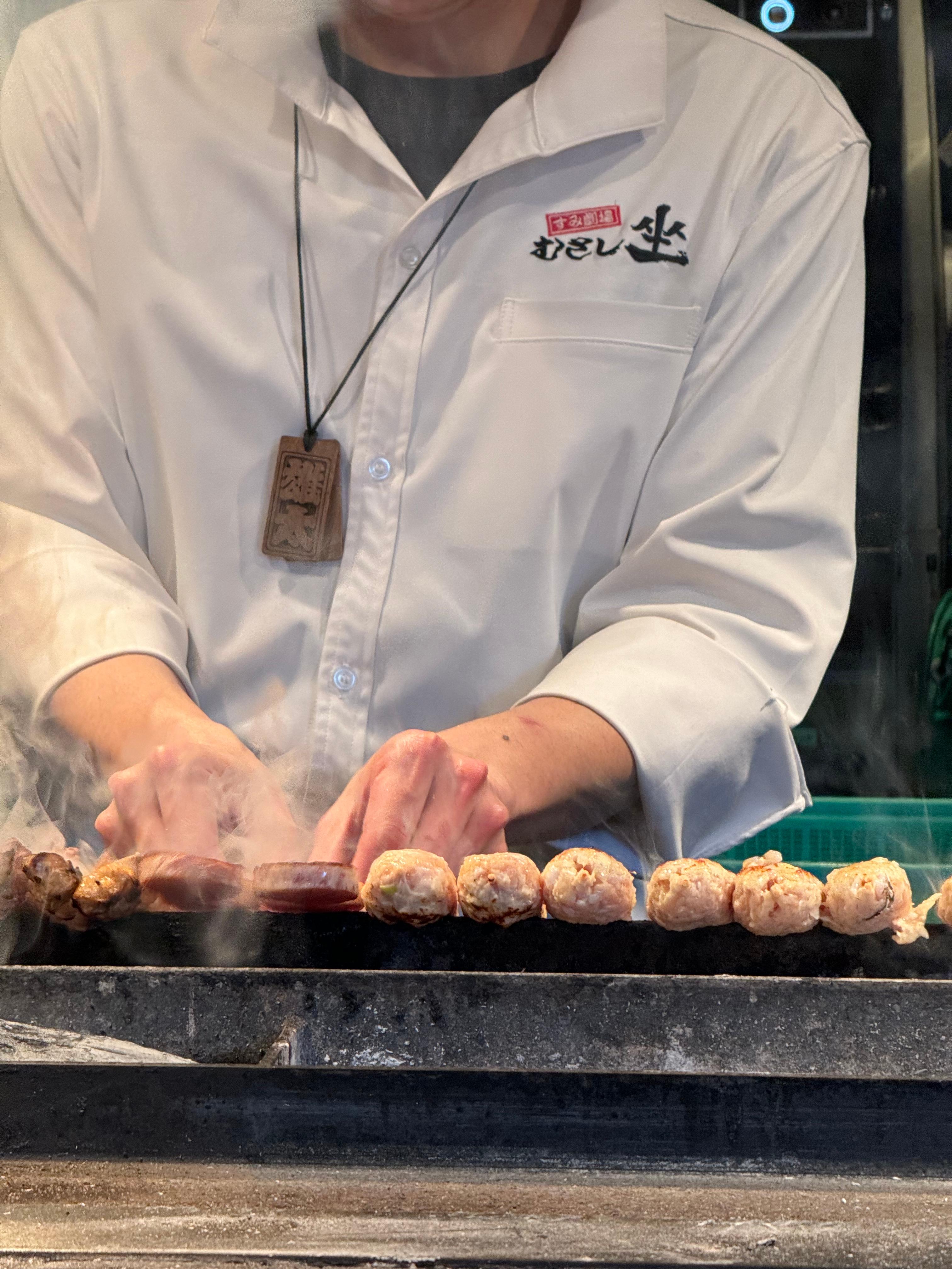 다음 두번째 장소는 예약이 필요한 곳으로 지금은 모르겠지만~ 제가 다녀온 작년엔 예약을 해야 해서 ㅠ 전날 가서 예약을 했습니다 이름은 스미케키죠 무사시자 라는 장소로 후쿠오카 가볼만한곳 으로 이미 SNS로 정평이 나있는~ 퍼포먼스? 술안주 야키토리 맛집 입니다