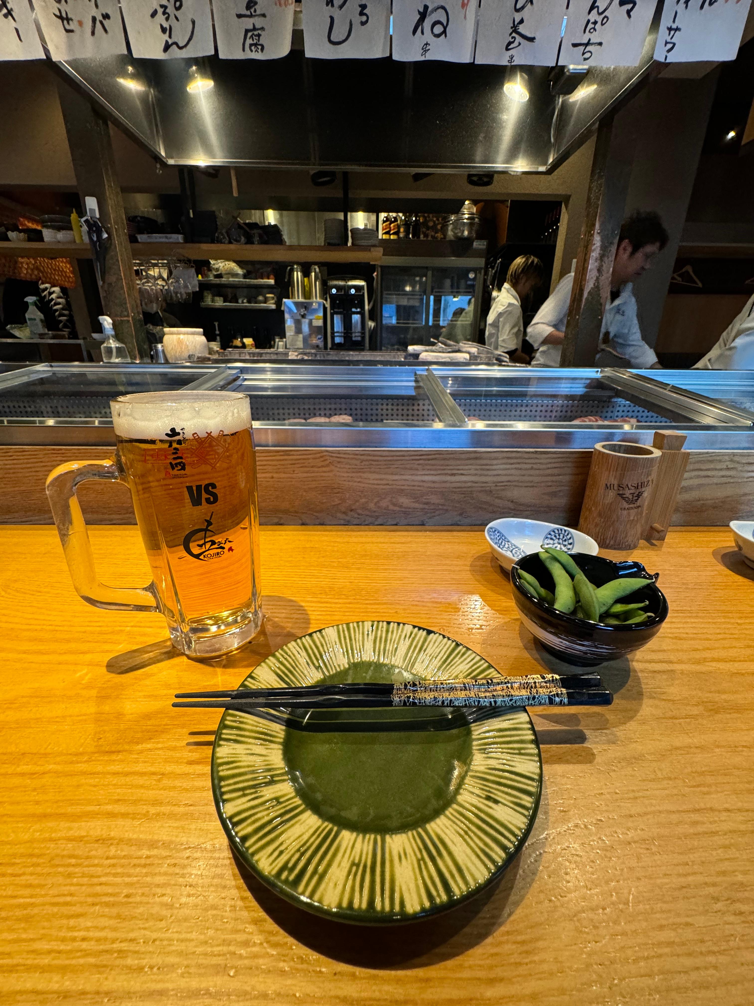 일단 나마비루 한잔 하면서 뭘 먹을지를 한번 싹~ 스캔 하는데~ 이곳에 오는 손님이나 분위기는 약간 MZ 감성이 잇는 이유가 직원분들도 젊고 염색하고 있고, ㅎ 연령대가 좀 어립니다~ 그러니까 막 애도시대 100년된 노포 맛집 이런개념이 아니라 그냥 요즘 한창 트렌드에 맞게 잘 꾸며놓고, 만들어놓은 음식점 정도로 봐주시면 좋을 듯 합니다