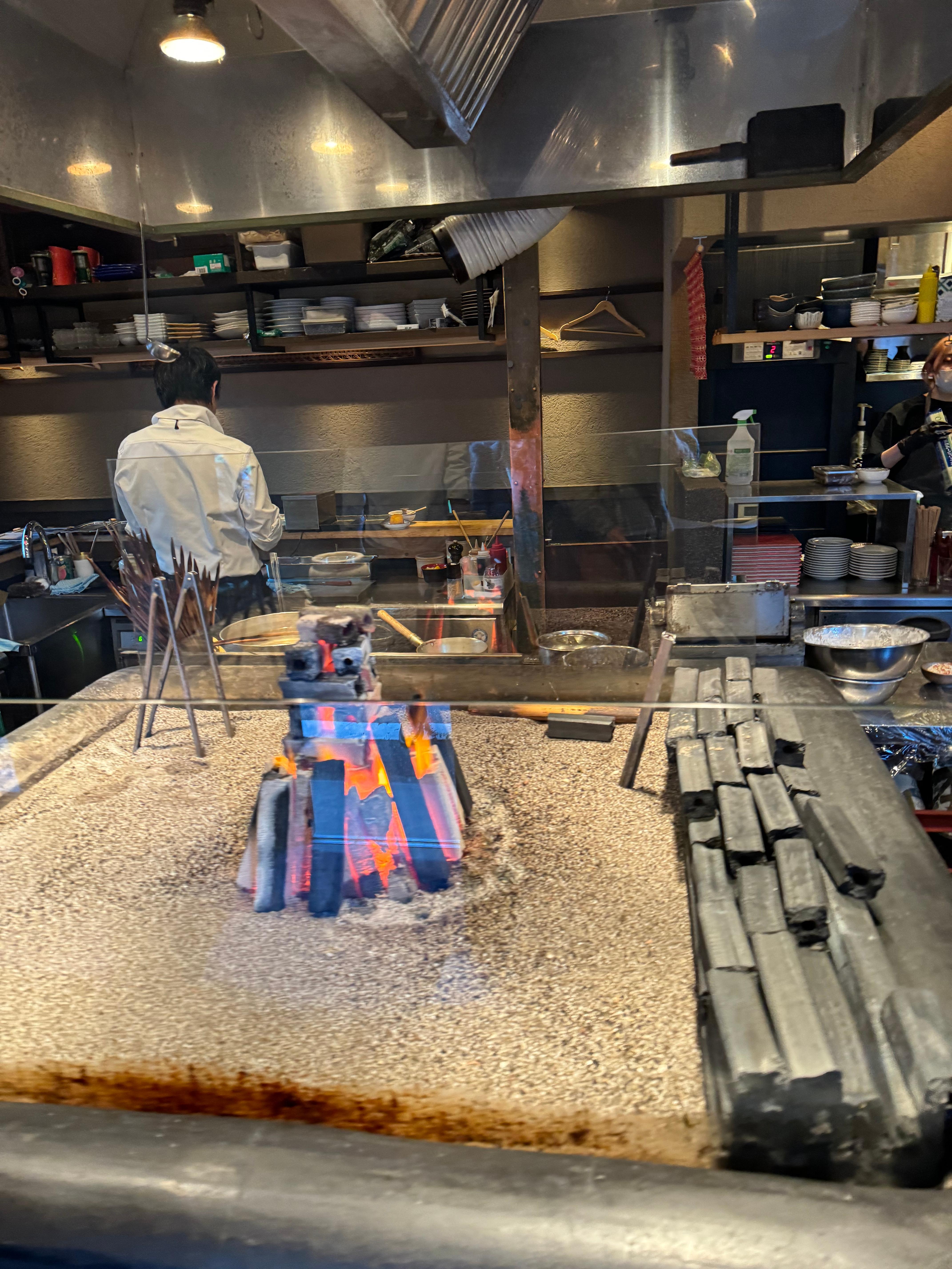 전 가게 문 열자마자 가서 들어가 앉아서 이분들이 준비 하거나 생선을 굽거나 재료 손질 하는걸 다 볼 수 있었습니다~ 이곳에서 유명해진 계기가 바로 이런 화로에 생선을 꼬챙이로 꽂아서 굽는게 그리고 소금을 뿌리는 퍼포먼스가 굉장히 유명해져서 이름난 장소라 할 수 있습니다~ 다만 여기는 가격이 그리고 생선 사이즈가 작아서 가성비는 떨어지는게 사실 입니다