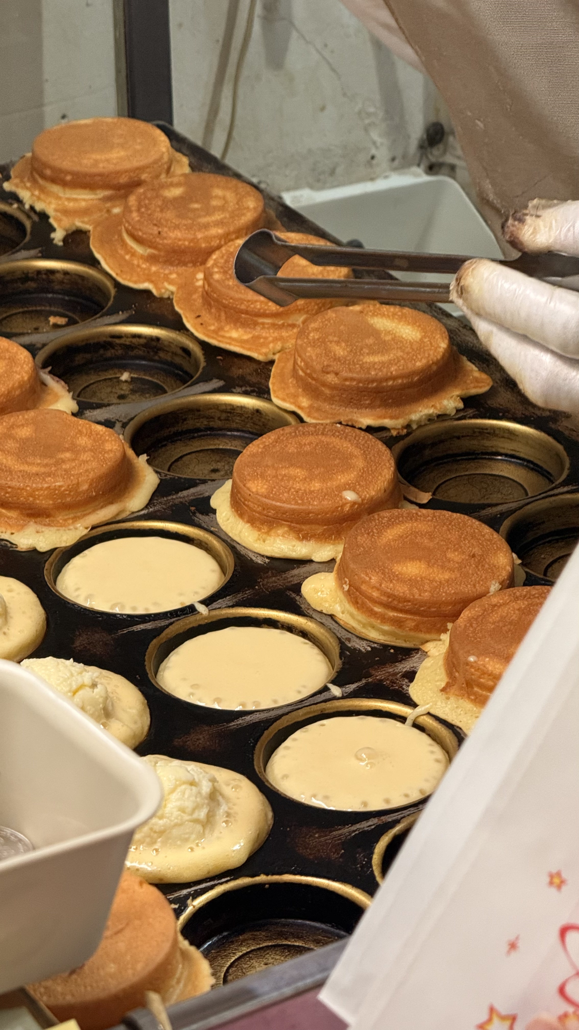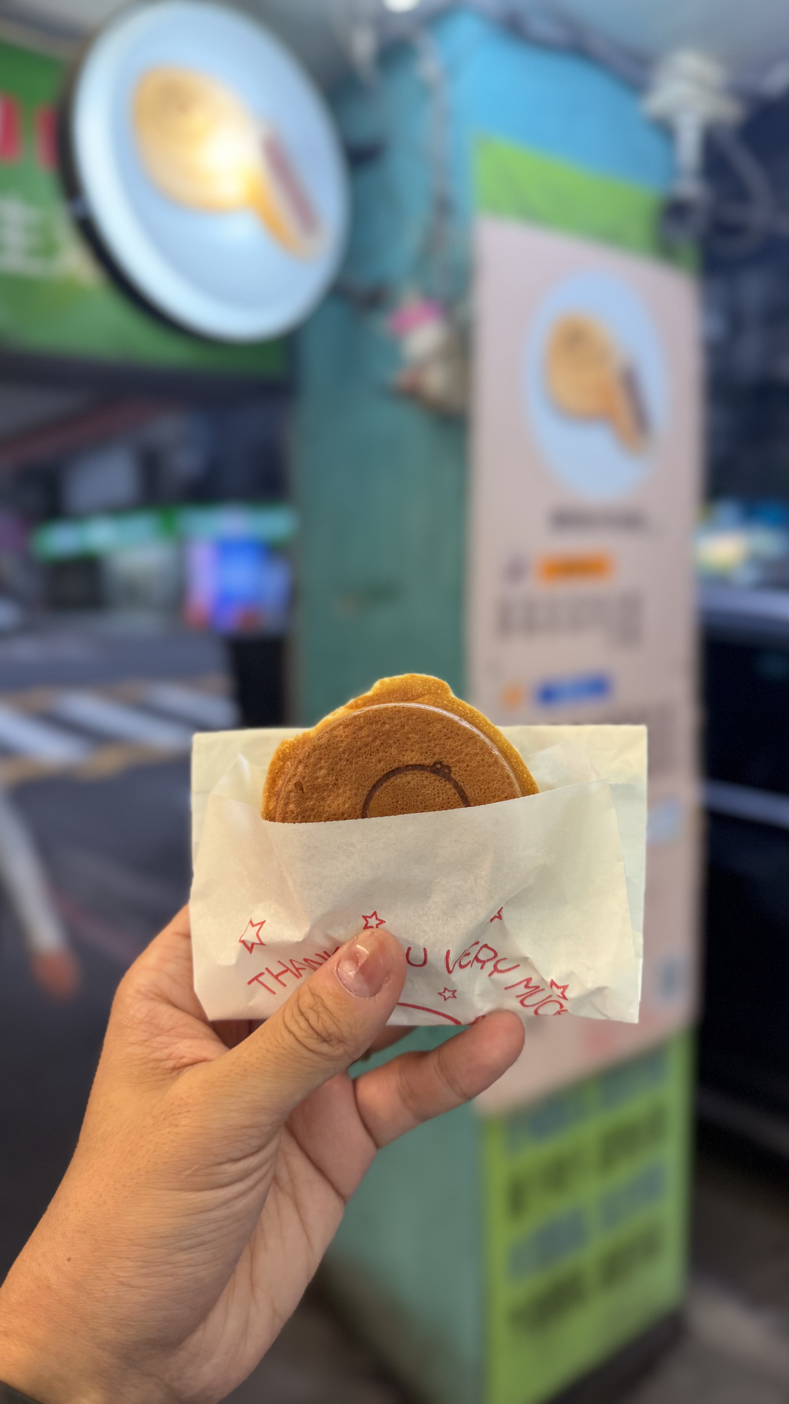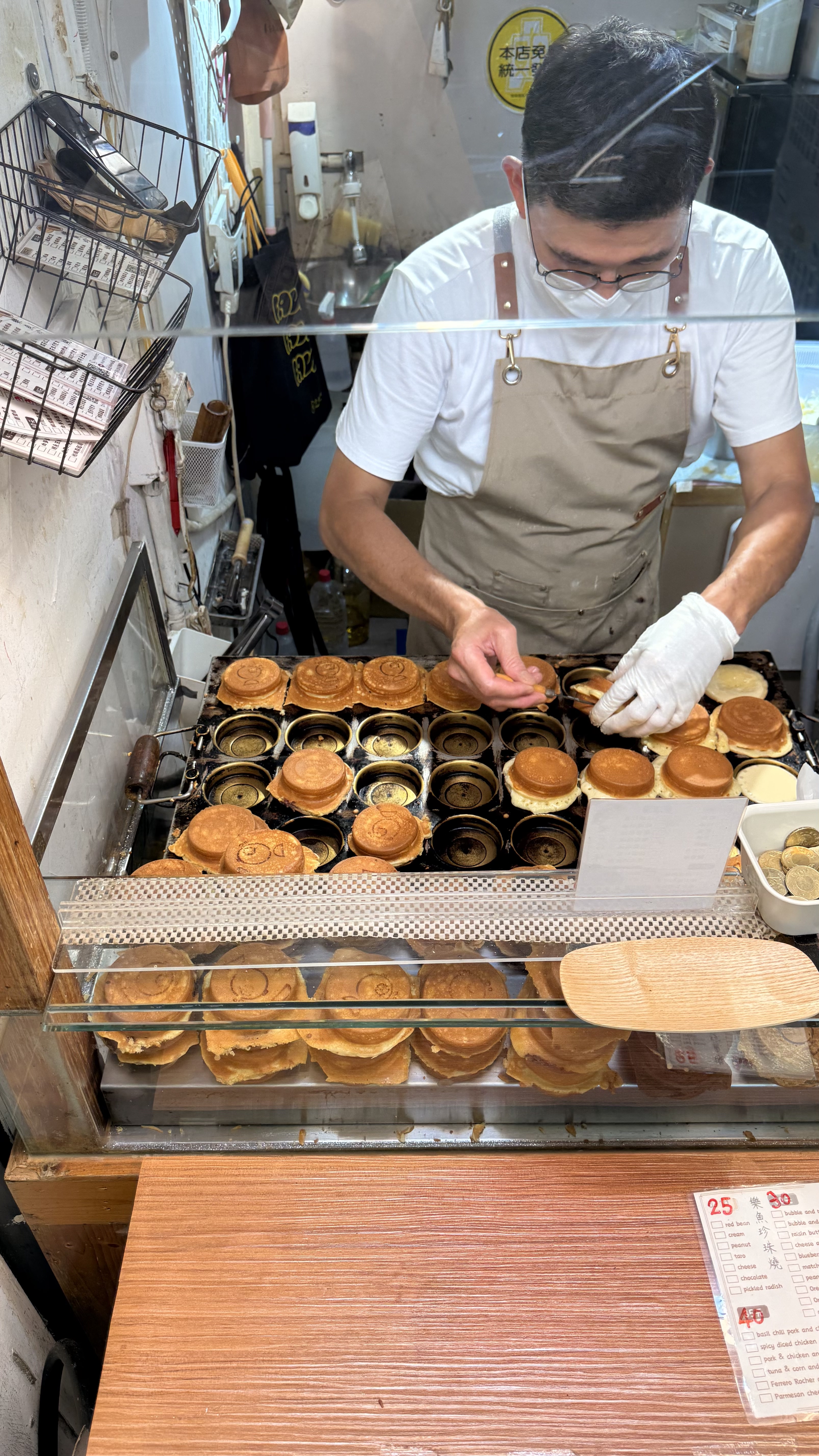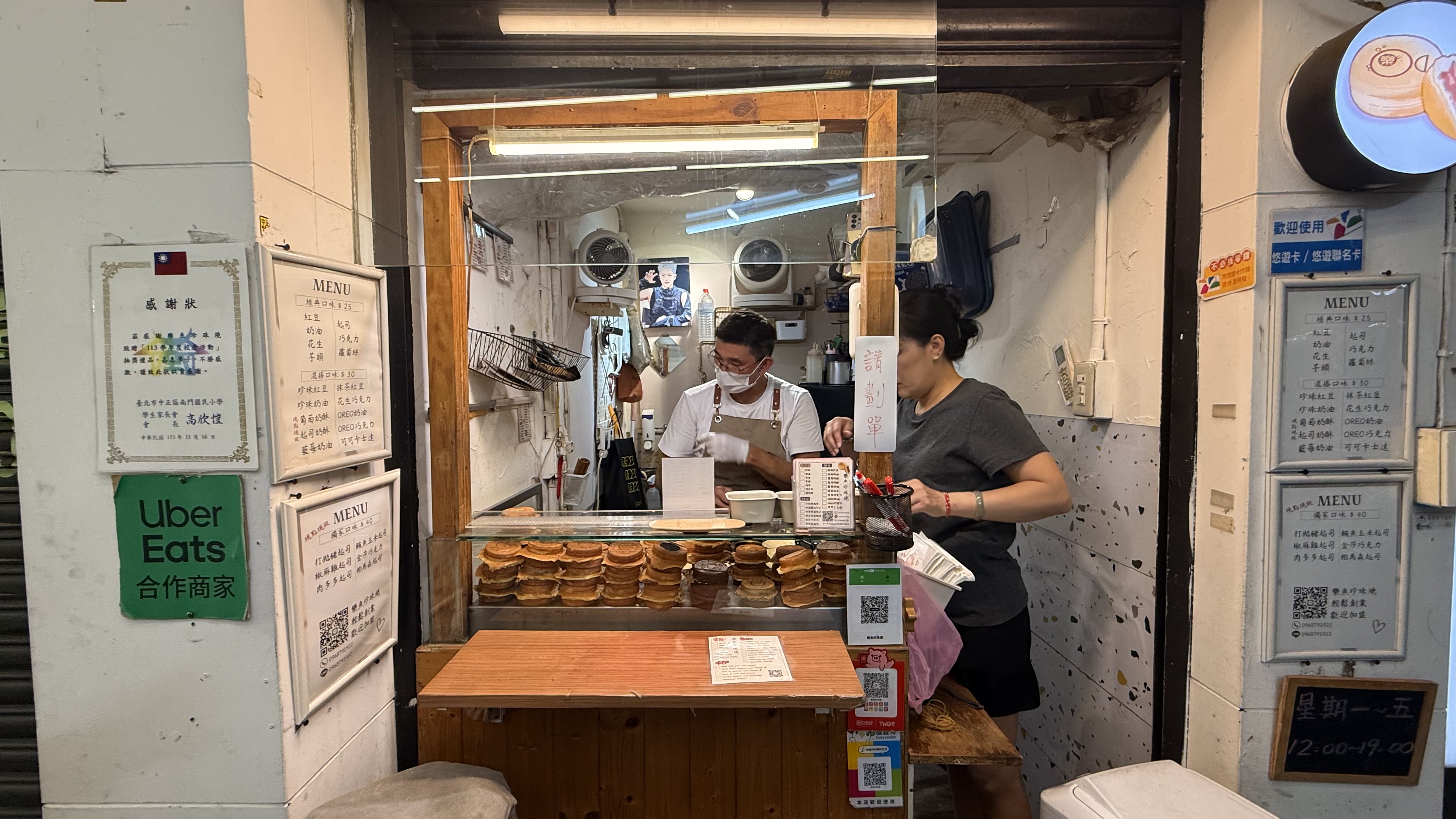 작은 포장형 가게로, 바깥에서 반죽이 구워지는 모습을 직접 볼 수 있어요.