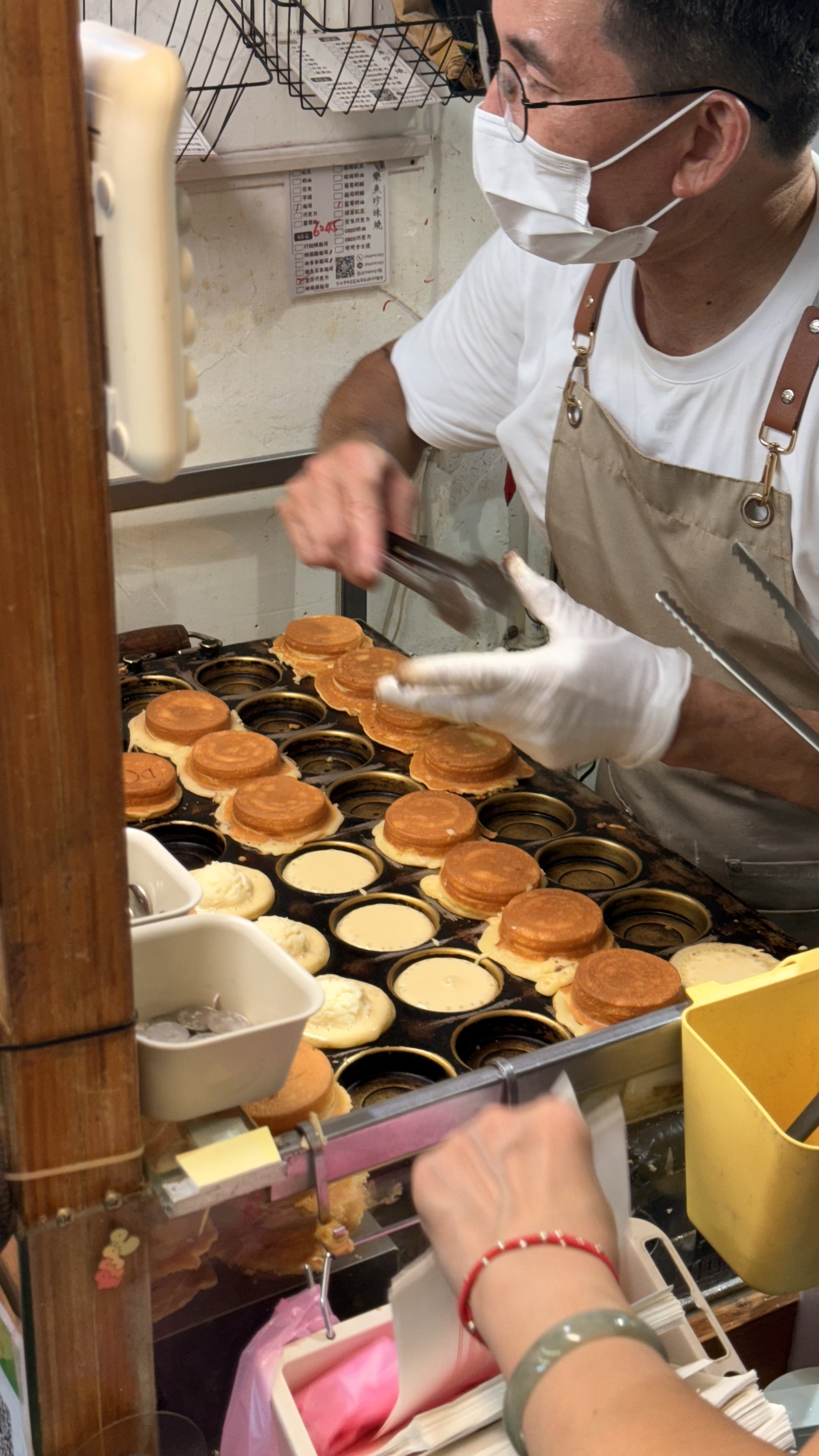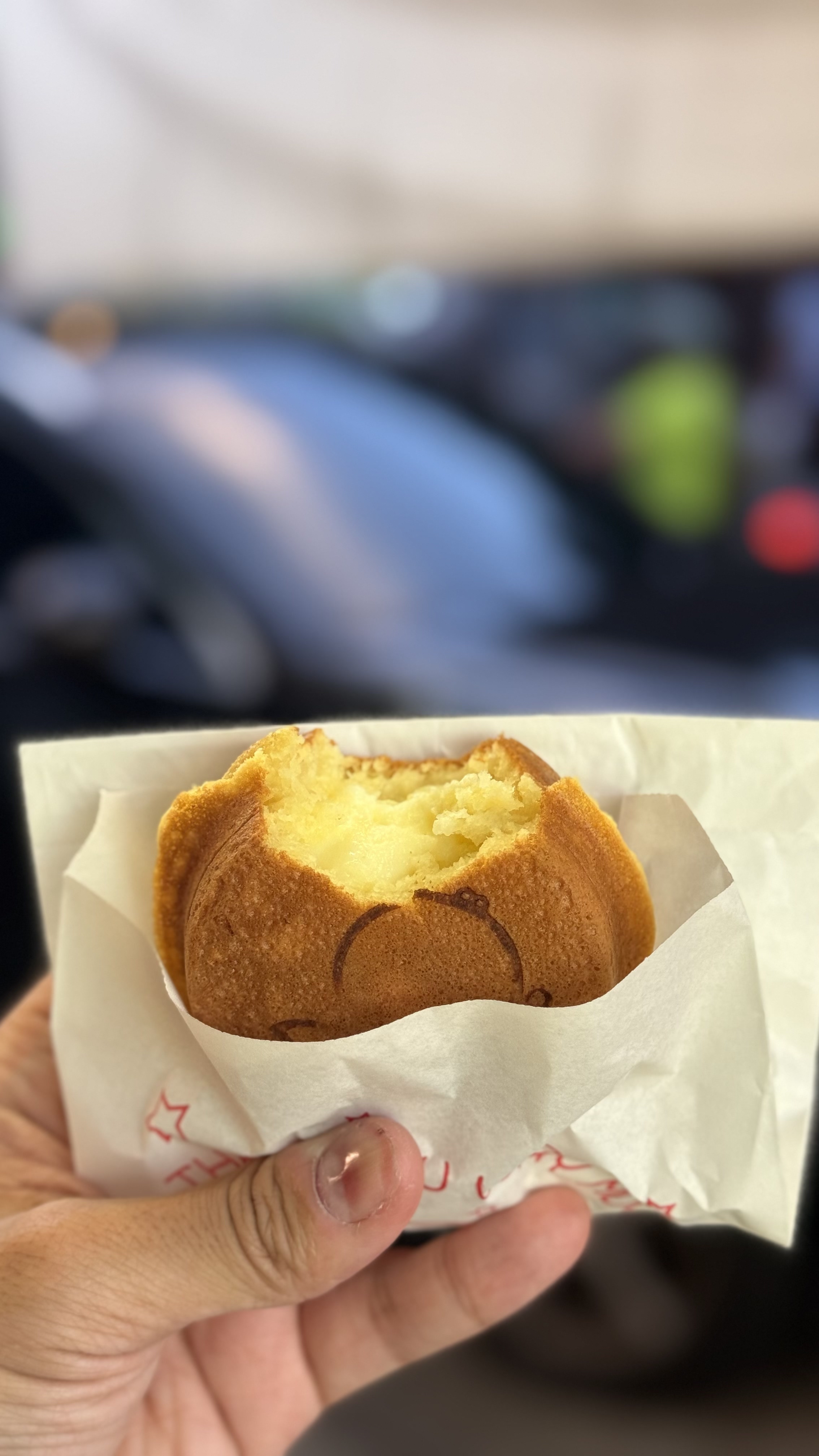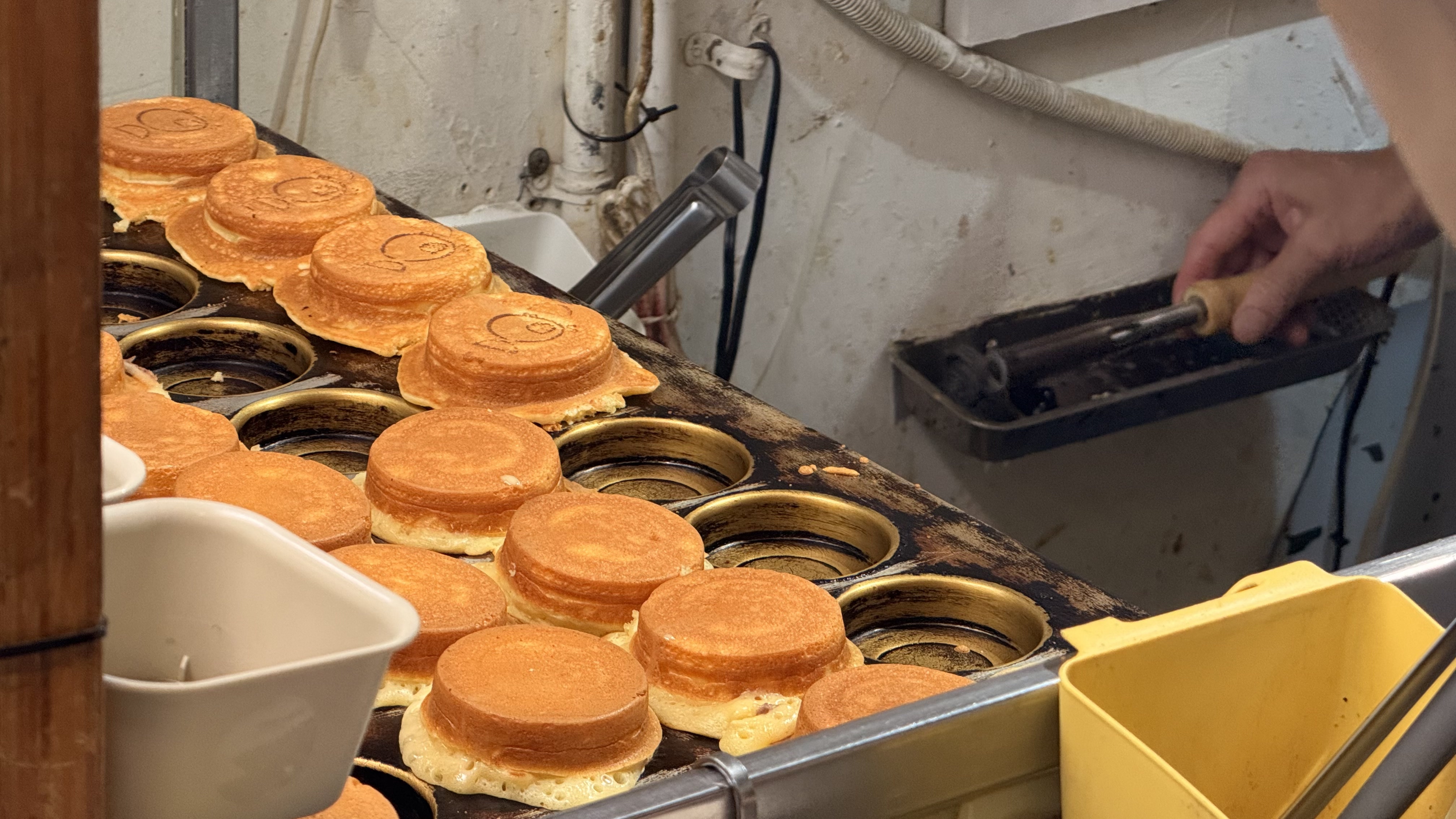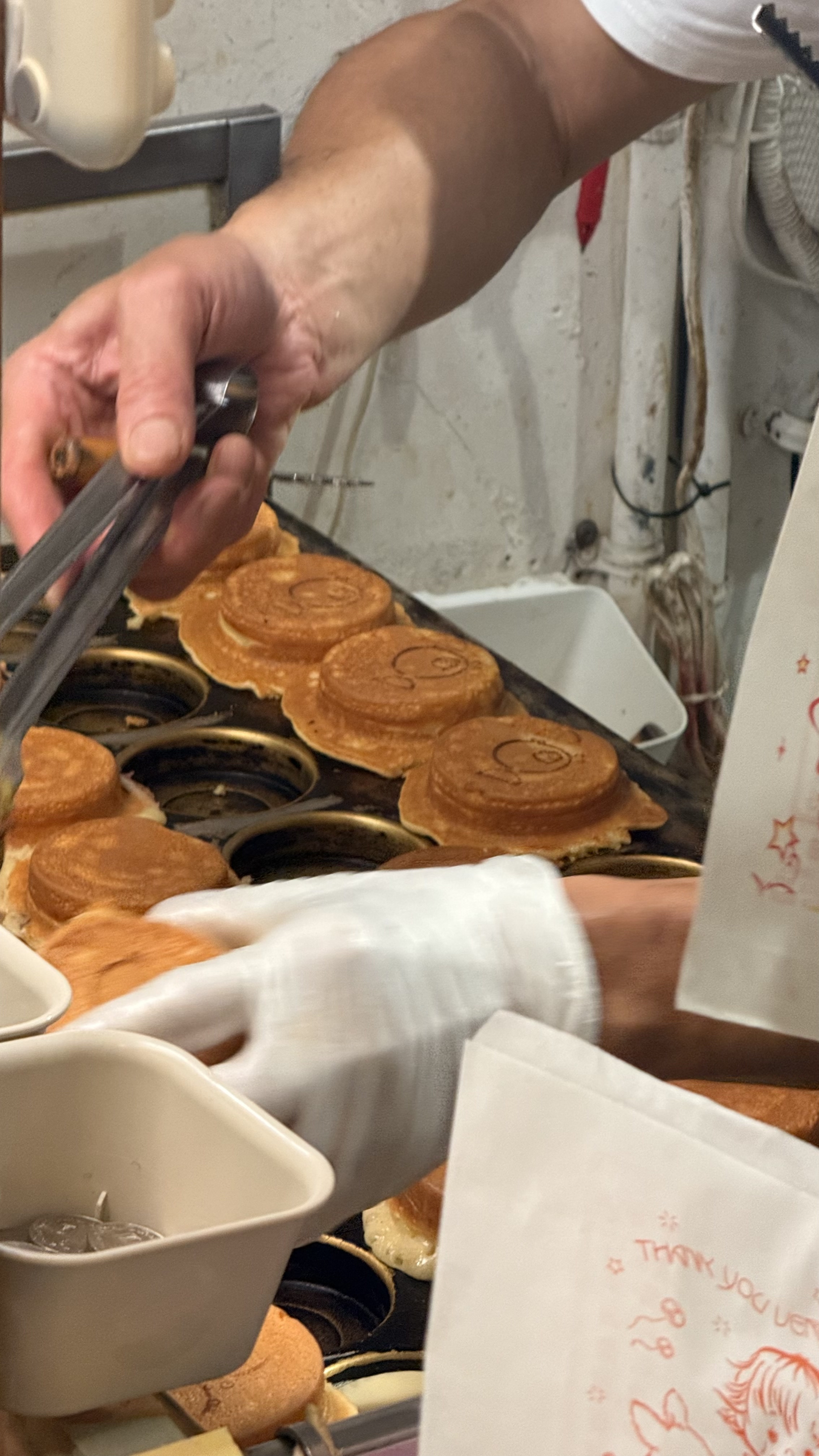 작은 포장형 가게로, 바깥에서 반죽이 구워지는 모습을 직접 볼 수 있어요.