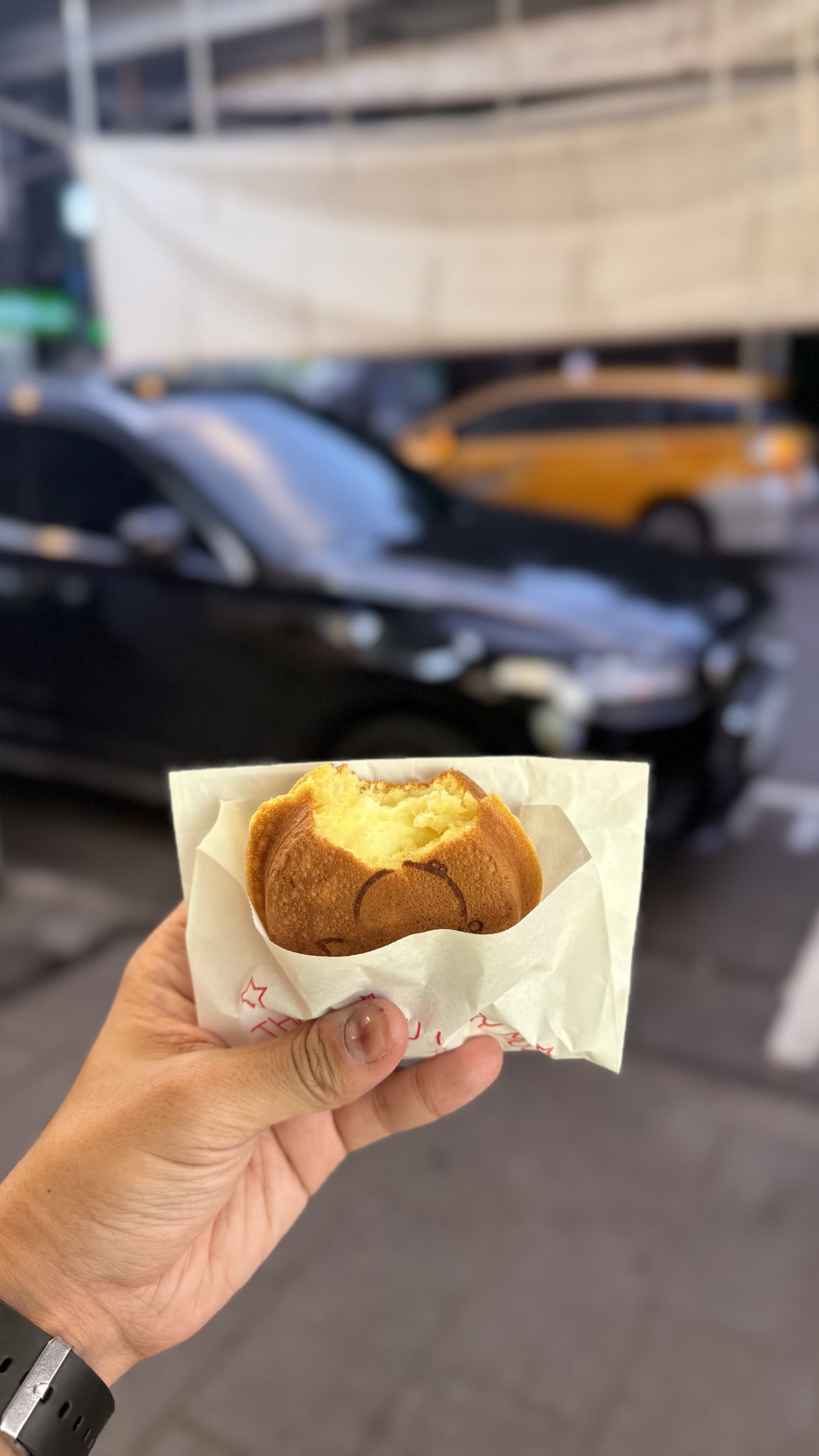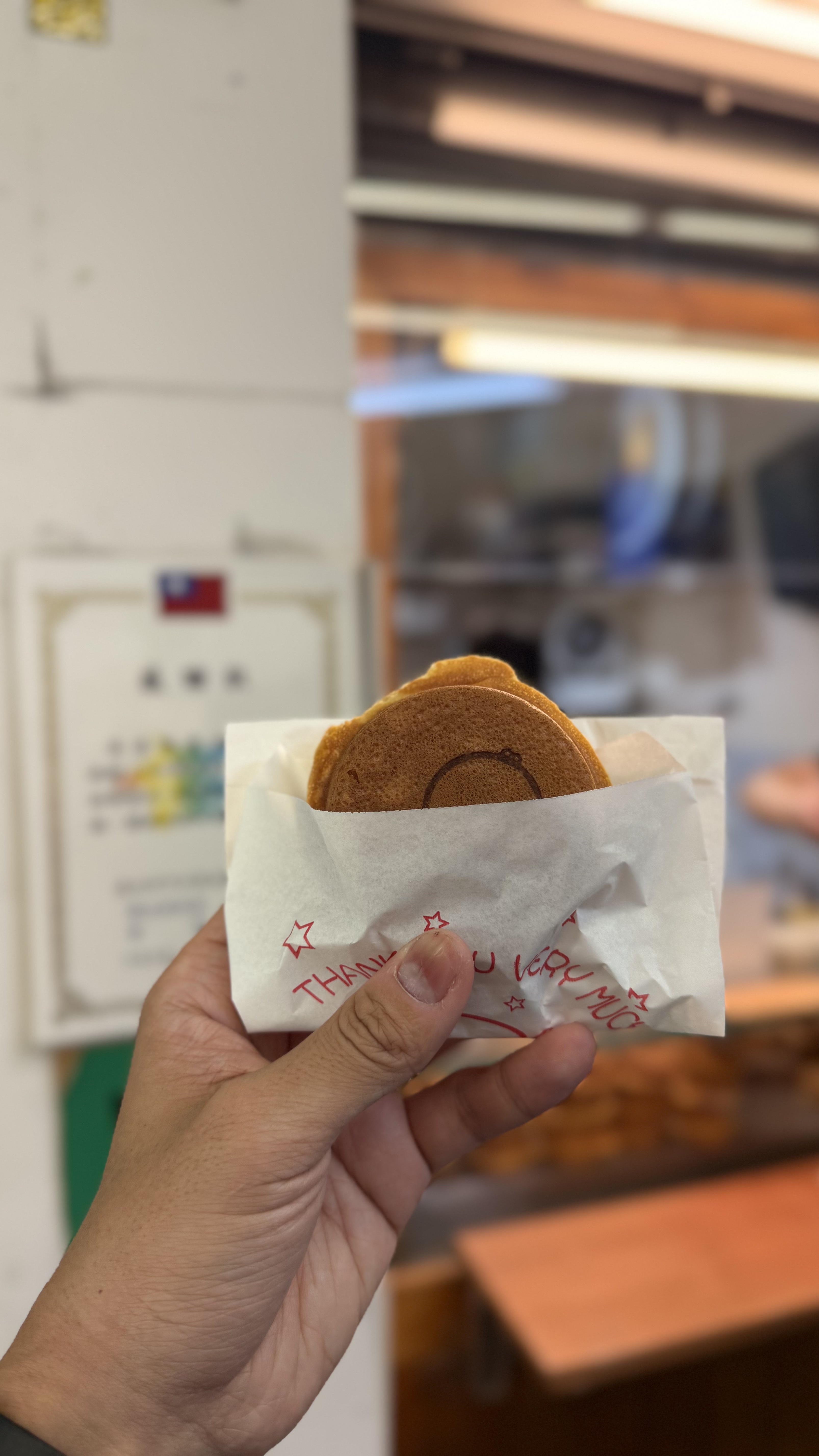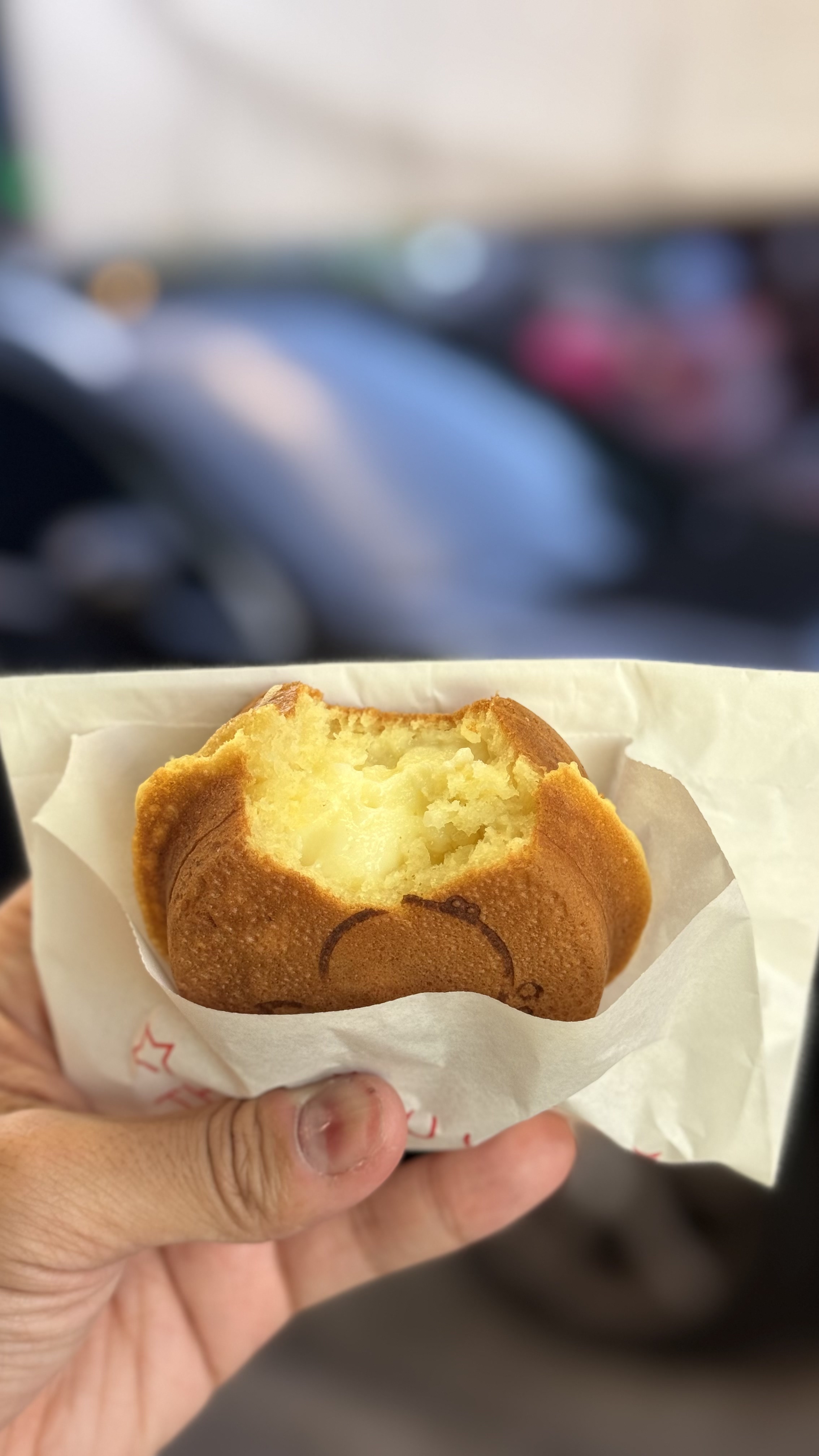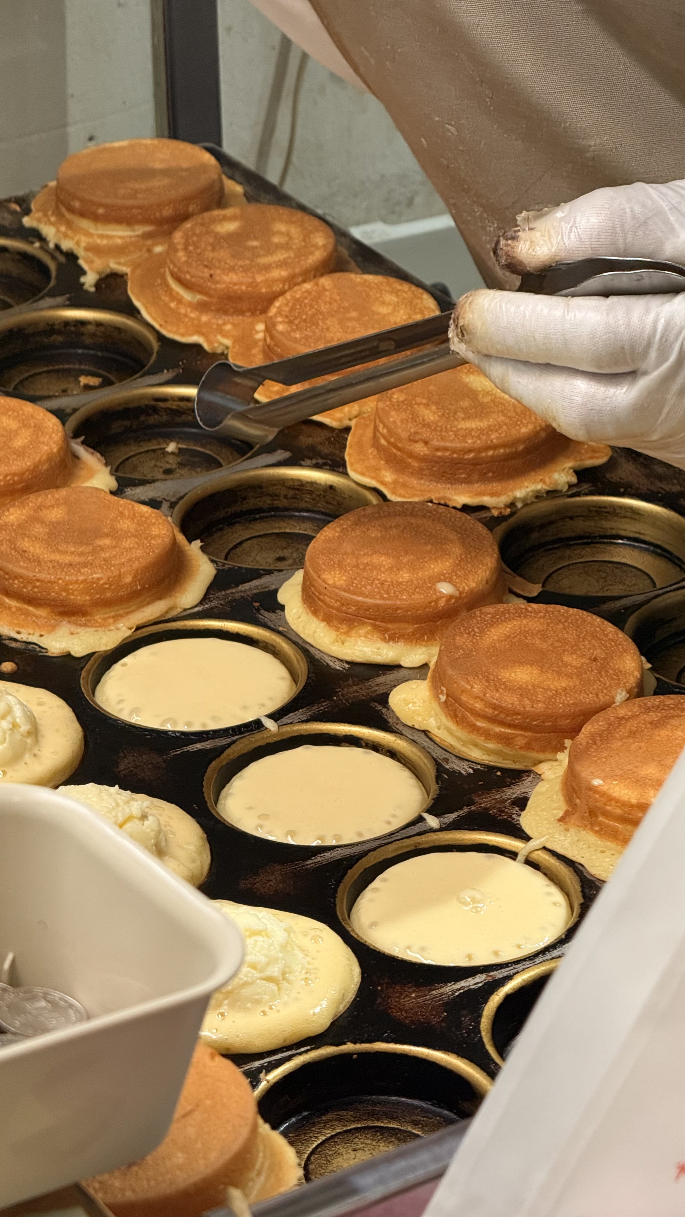 작은 포장형 가게로, 바깥에서 반죽이 구워지는 모습을 직접 볼 수 있어요.