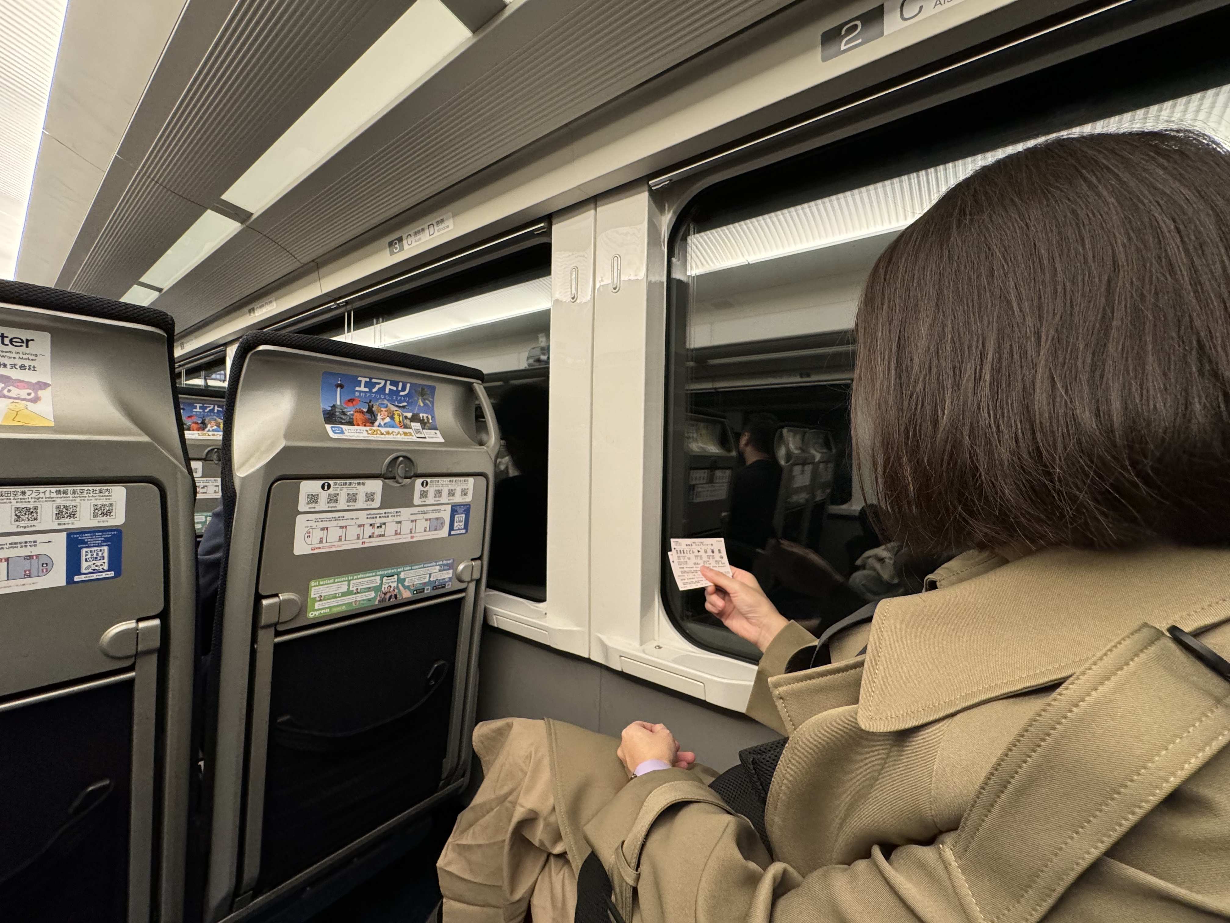 장점은 20분 마다 배차간격이라서 따로 뭐 기다릴 필요가 없고, 언제가더라도 20분만 기다리면 도쿄 시내로 들어갈 수 있습니다~ 그리고 특급열차 라서 그런지는 몰라도 속도도 아주 빠르고, 캐리어를 놓을 수 있는 공간도 아주 잘 마련되어 있고, 너무나도 좋습니다~ 또하나 장점은 그 다음 사진을 보면서 설명을 드려보도록 하겠습니다