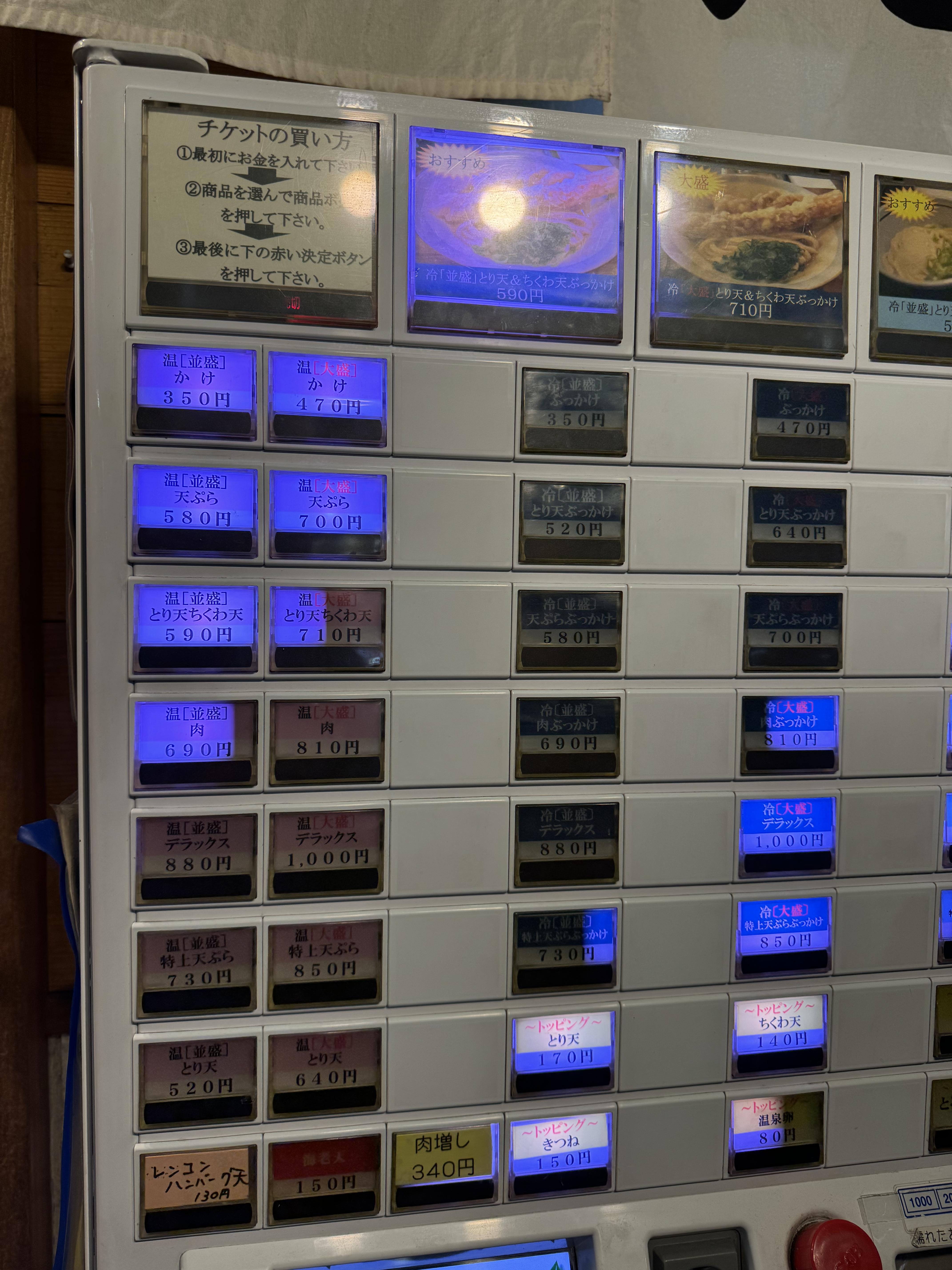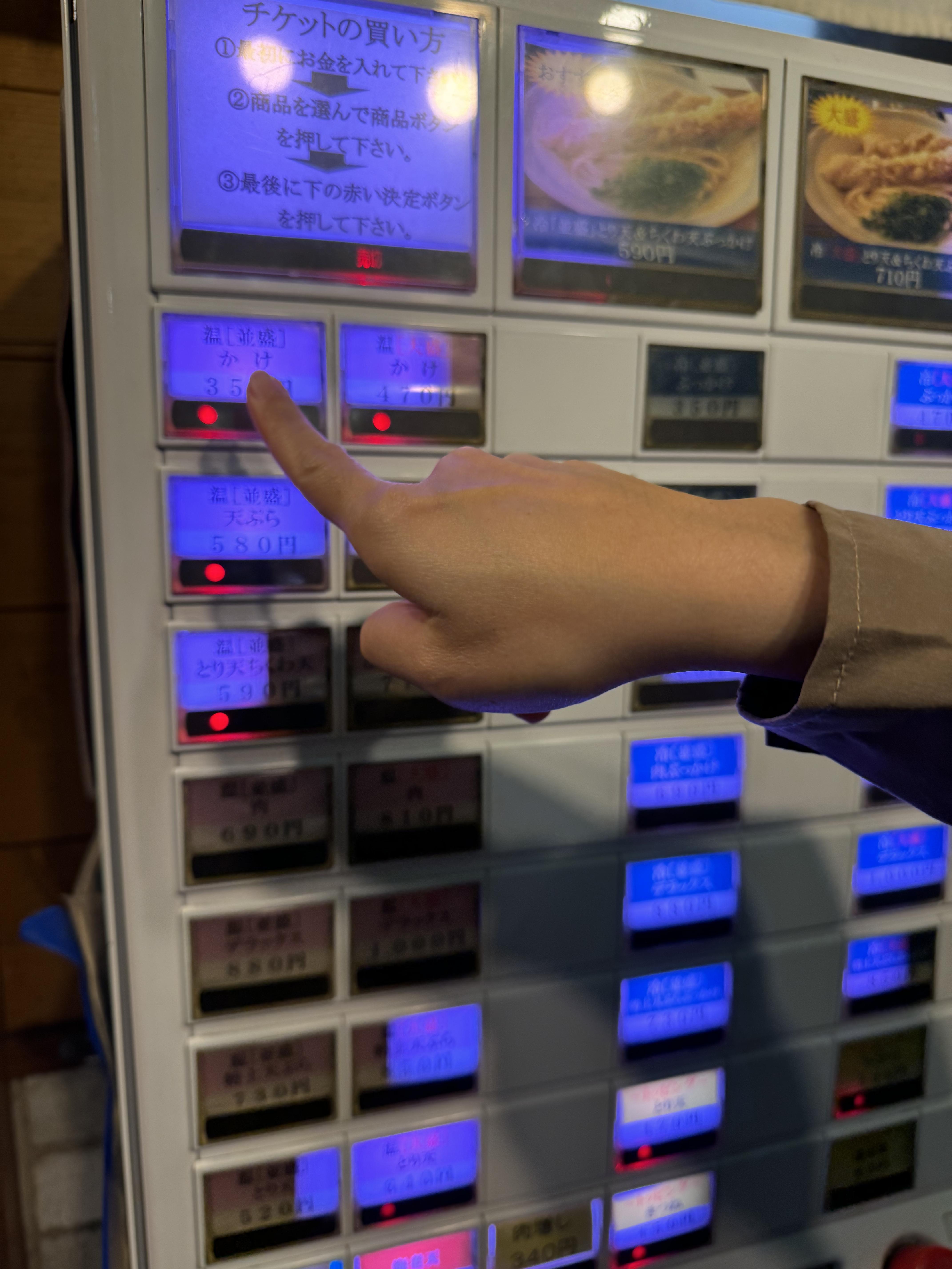 자 아직 해가 안졌습니다만~ 나리타공항 열차 를 타고 이렇게 우에노역 으로 와서 바로~ 우동 을 먹고자 했습니다~ 자판기에서 원하는 우동을 선택하고 돈을 넣습니다