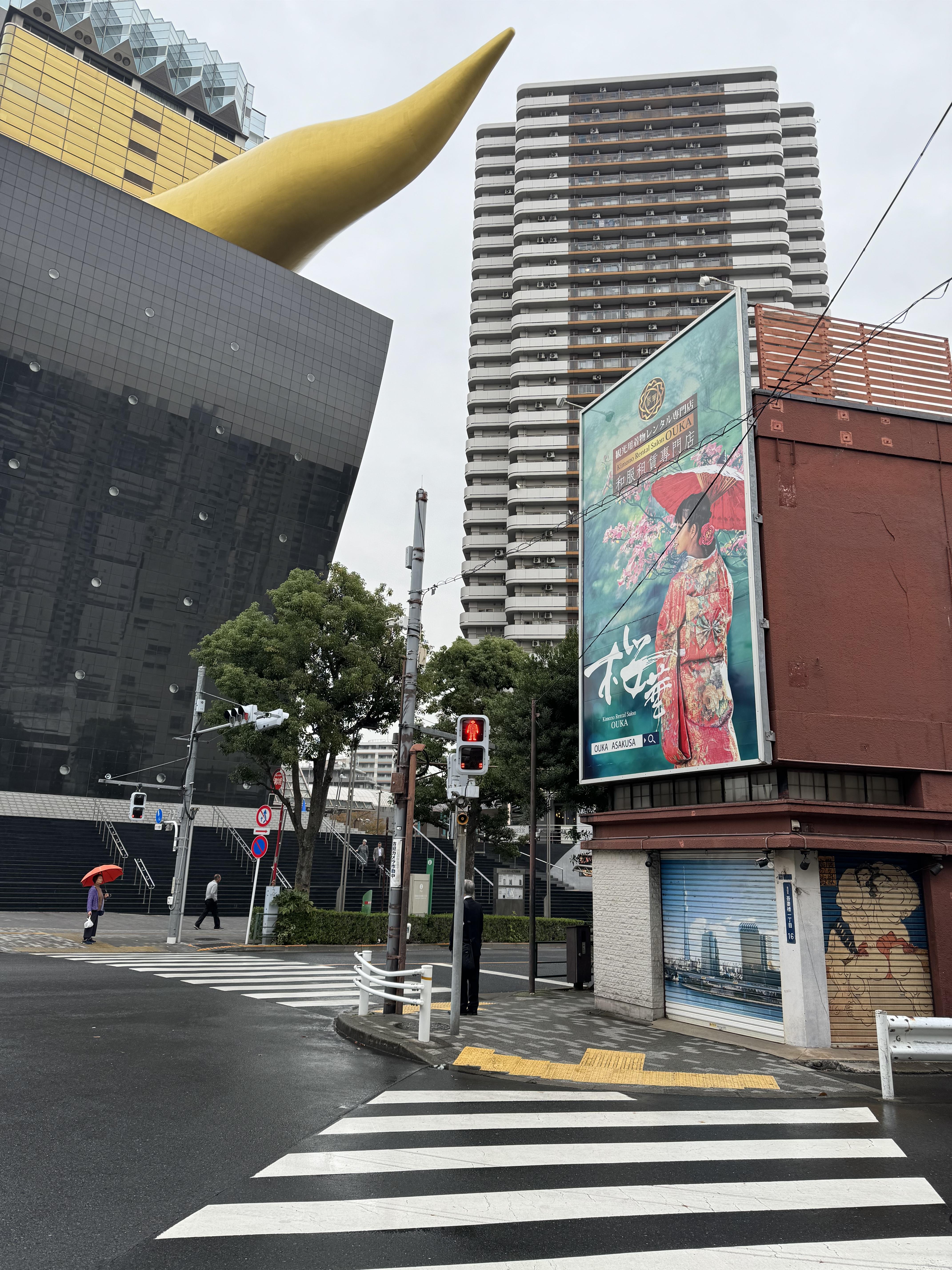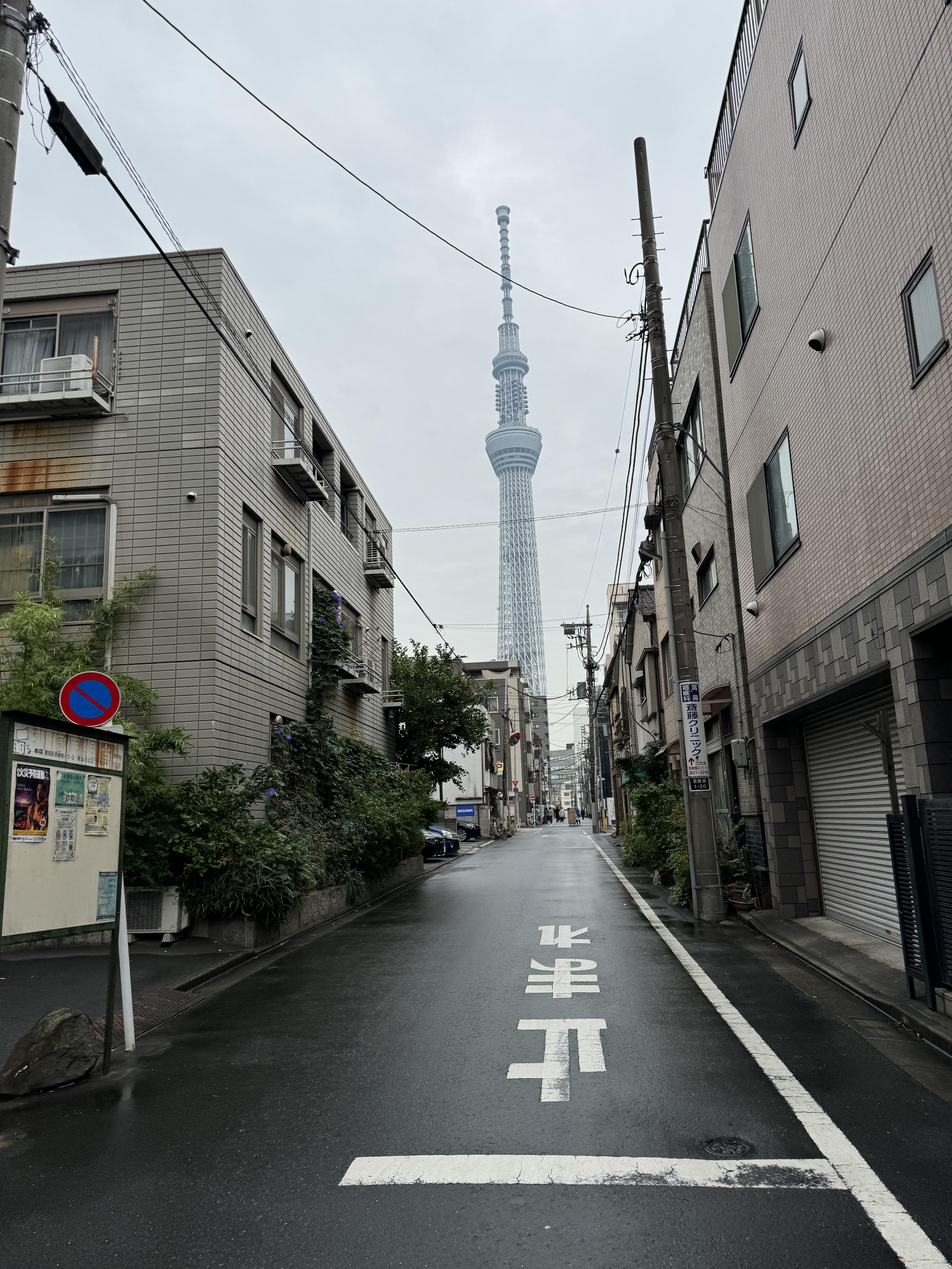 생선 육수를 마시는 자판기도 보이고, 저 멀리 스카이트리 가 있어서 일단은 좀 멀어보였는데~ 추적추적 비오는날 도쿄 길거리 구경하면서 그곳까지 가는 매력이 있습니다