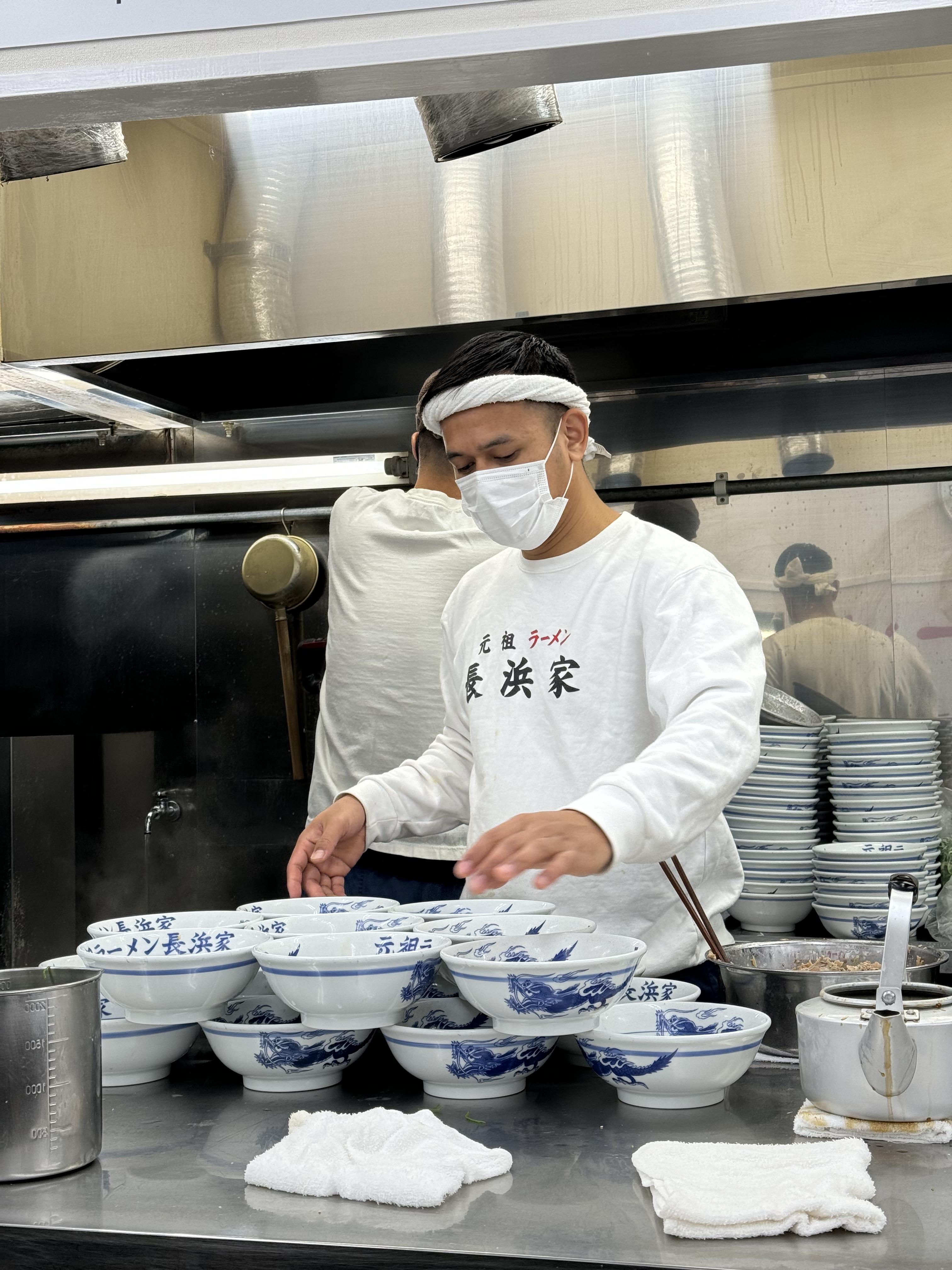 누가보면 흔한 라멘 한끼 가 뭐 엄청난 맛집 인거 처럼 줄을 서고 먹나 할 수 있는데~ ㅎㅎ 여기 나가하마케 는 라멘 맛도 맛이지만~ 직원들이 분주하게 움직이면서 요리 준비하는 그런 모습이 참 인상적 입니다