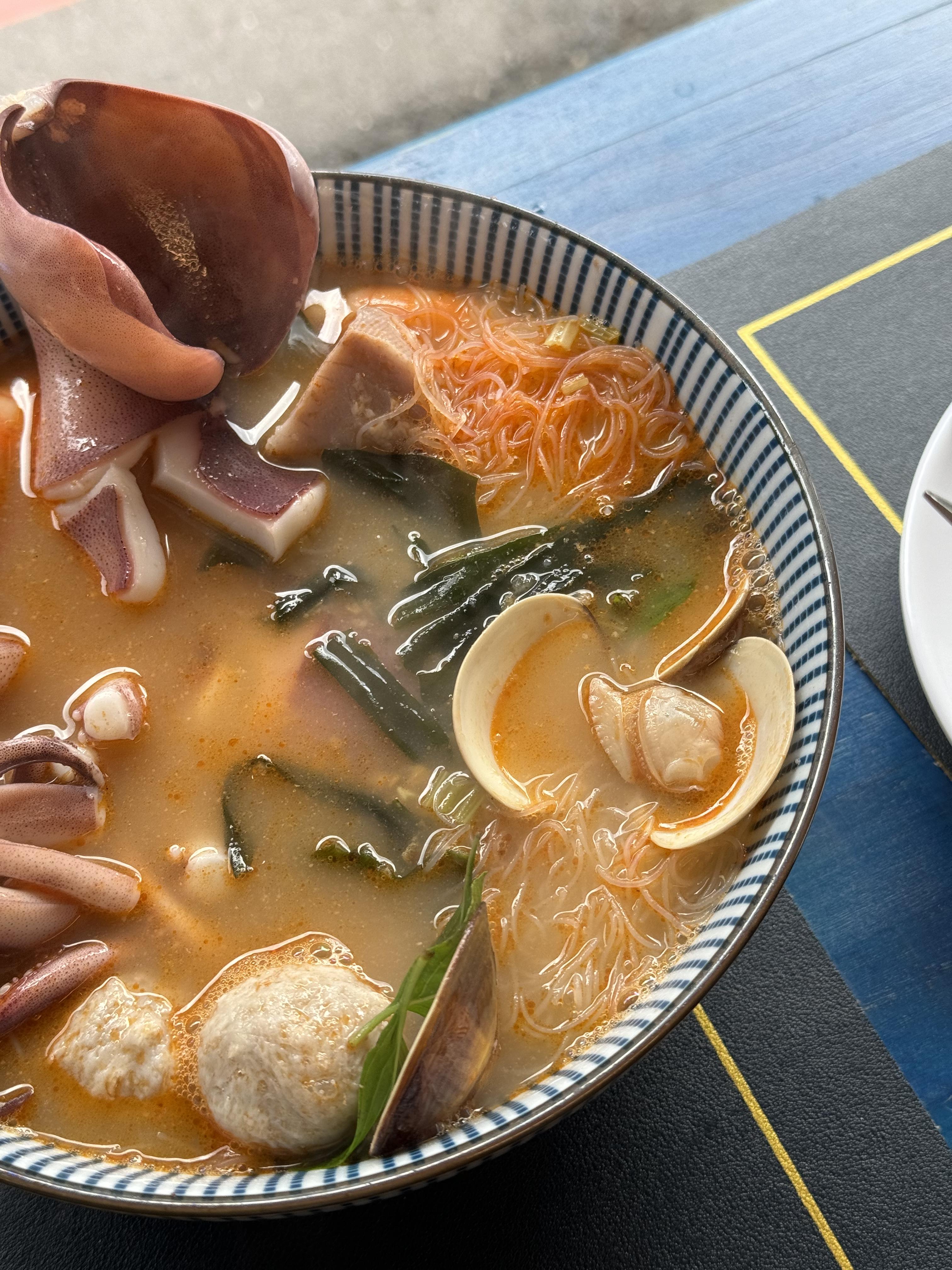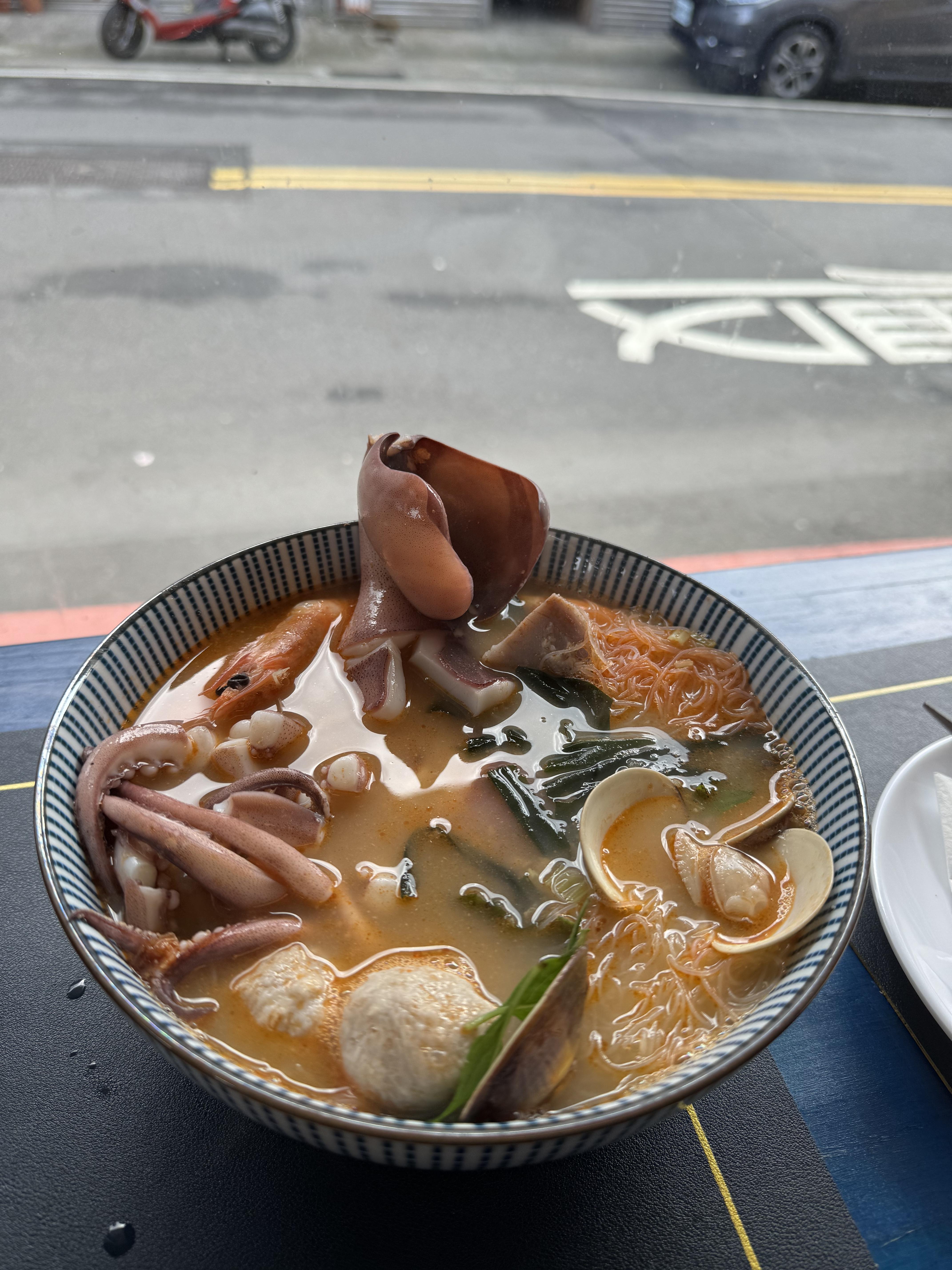 완자, 조개, 오징어, 새우 등 다양한 해산물이 들어가 있고, 면도, 있고, 건더기가 너무나도 많습니다~ 사진으로도 느껴지는 푸짐함 입니다~ 대만 가는 분들은 해산물 맛보면 힐링 됩니다