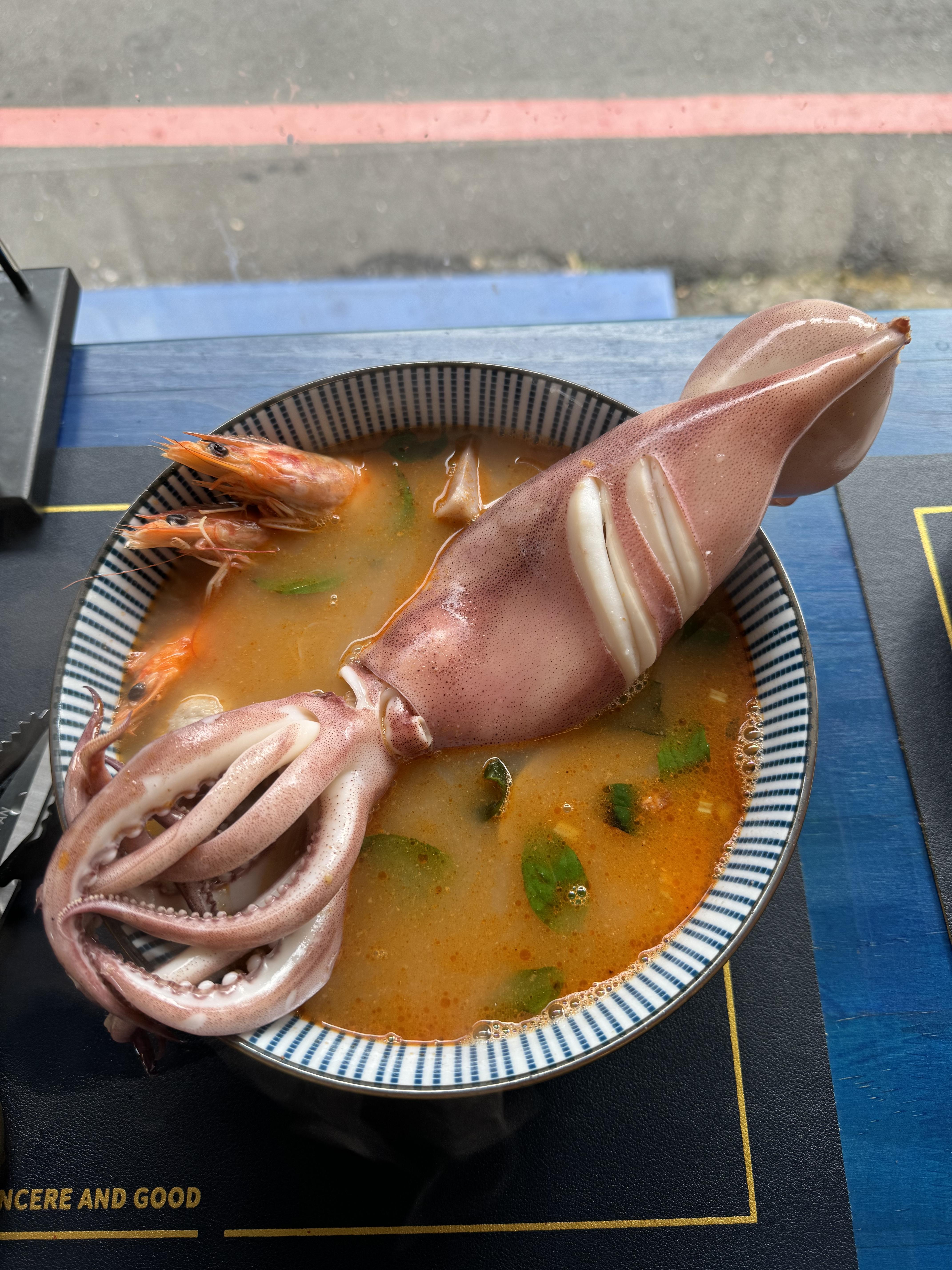 두가지 메뉴를 주문했고, 정말 왕만한 그릇에 ㅎㅎ 오징어가 한마리가 통으로올라갓습니다 오마이갓 요즘 양이 줄어서 다 먹기가 좀 어려웠는데~ 맛은 아주 훌륭 했습니다~ 술이 들어간 닭요리도 있고, 국물이 넉넉해서 좋았습니다 이열치열이라는 말과 같이 밖은 분명 더운데~ 시원한 에어컨 맞으면서 맛보는 요리~ 최곱니다~ 대만 자유여행 하시다 보면 뜨겁게 훠궈 먹는것도 좋고, 저처럼 이렇게 탕 요리를 먹는거 전 강추 드립니다~ 몸의 열을 다 빼줍니다