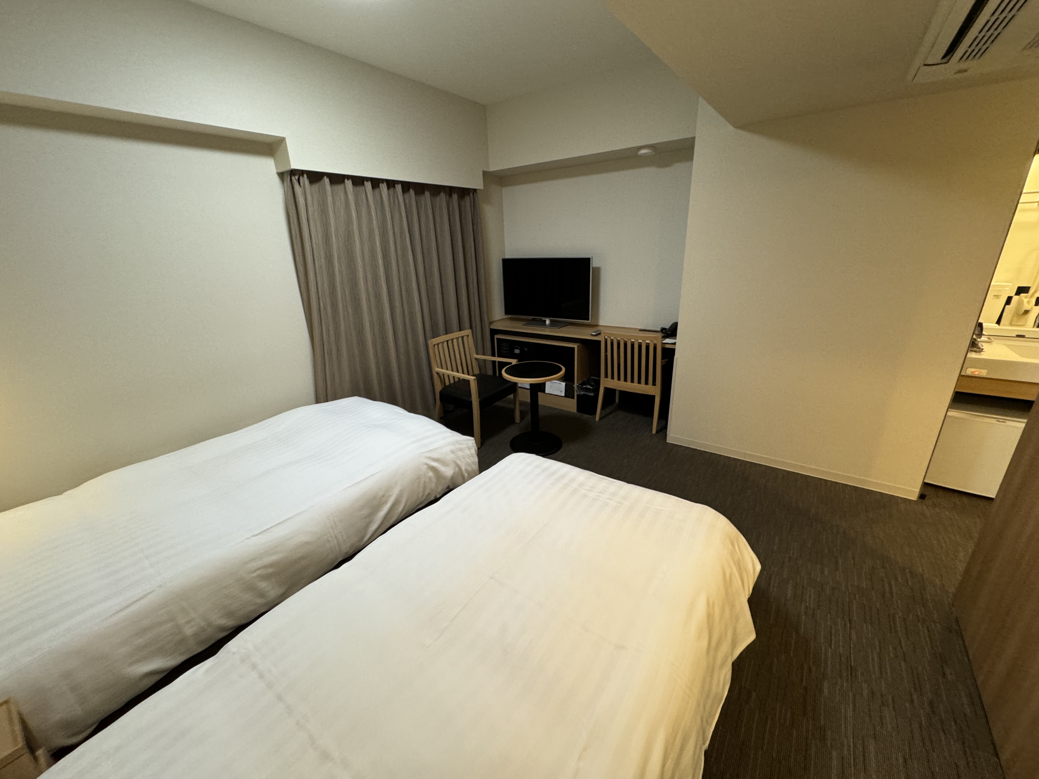 트윈 베드이고, 침대가 상당히 컸고, 방 자체의 크기가 상당히 넓었습니다~ 그리고 별도의 세면대가 있다는 점도 참 좋았습니다 그리고 객실이 뽀송뽀송 하니 뭔가 쾌적했습니다~